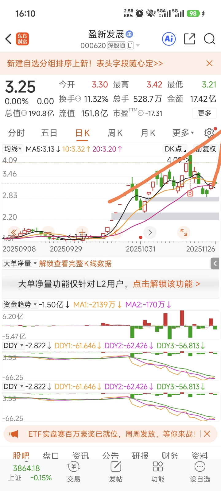 $盈新发展(SZ000620)$ 直接上图,不多说