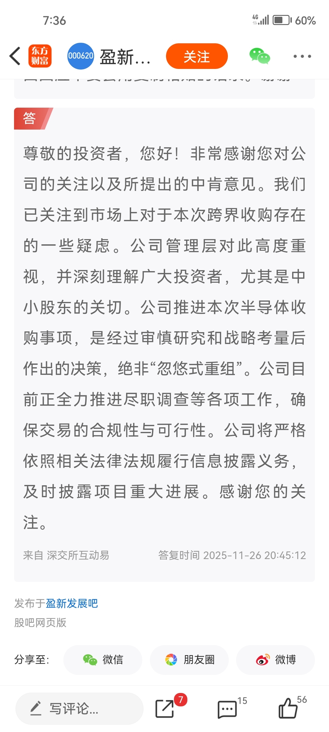 $盈新发展(SZ000620)$ 公司回复网民公司绝非忽悠式重组1