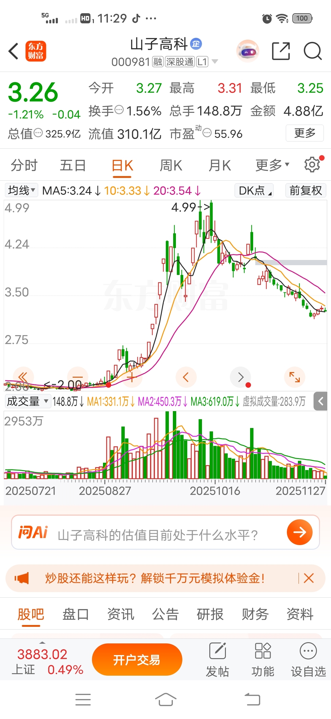 $盈新发展(SZ000620)$ 这个走势跟山子高科好像啊,山子阴跌一个月,从4.99到3.13才止跌,感觉是同一个主力操作。