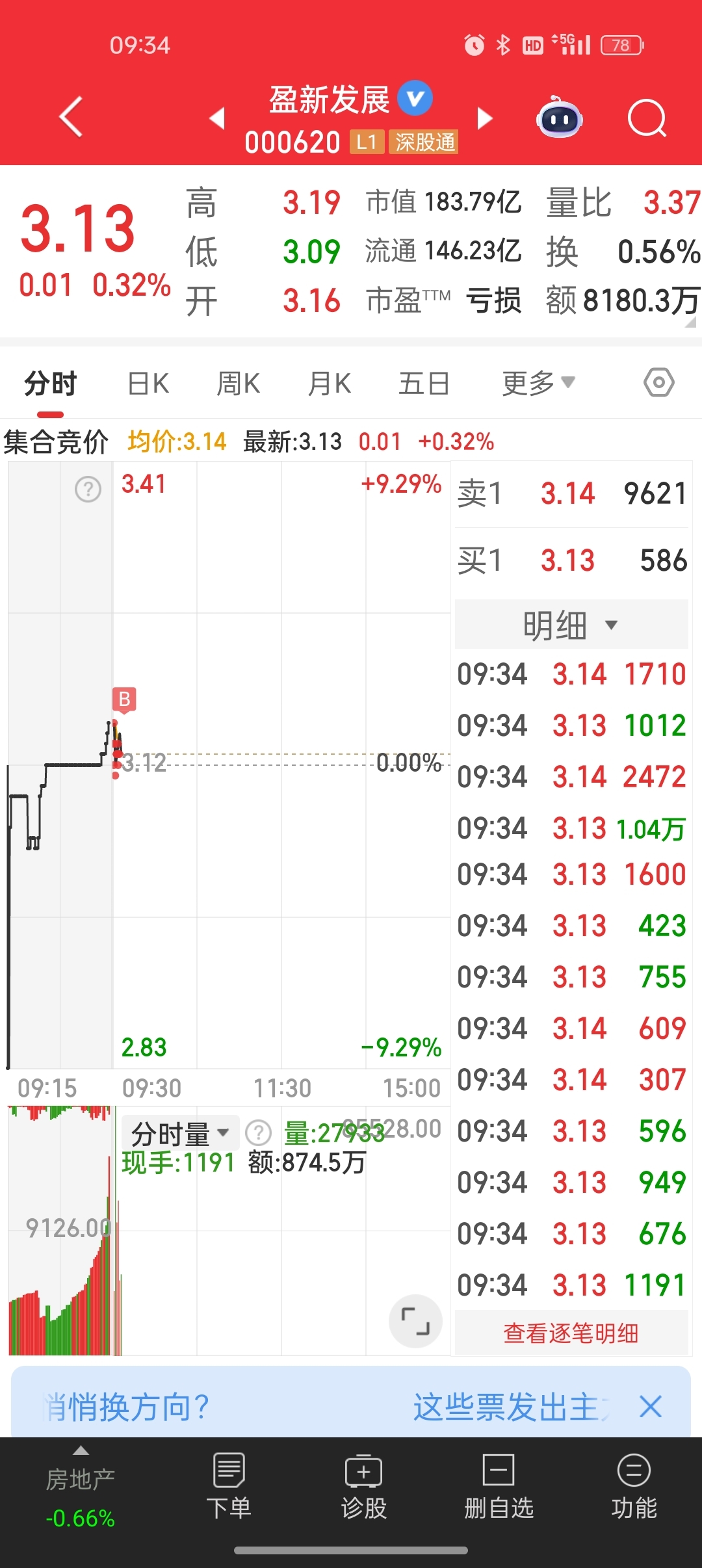 $盈新发展(SZ000620)$ 鄙人不才全仓买入杠杆拉满。开盘好于预期,再次全仓杀入,我够生猛吧,分笔买入的,成本3.135,仓位100%