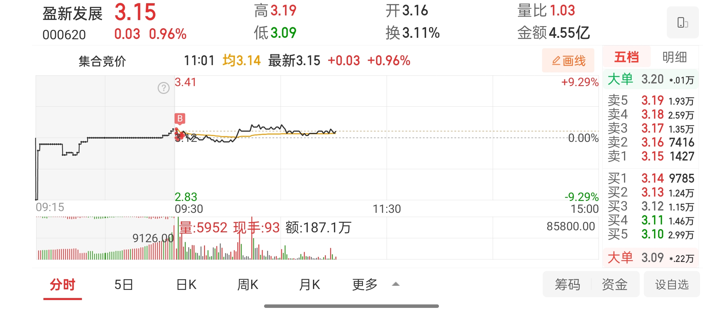 $盈新发展(SZ000620)$ 鄙人不才,全仓买入,杠杆拉满。建仓成本3.135,仓位100%,今日基操已完成,晒图如下