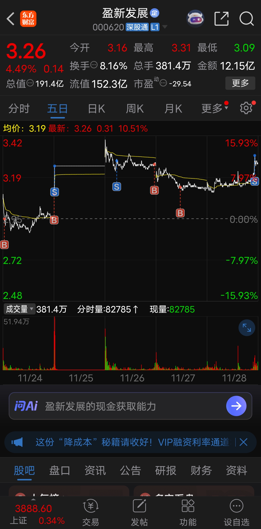 $盈新发展(SZ000620)$ 做做踢,感觉挺好