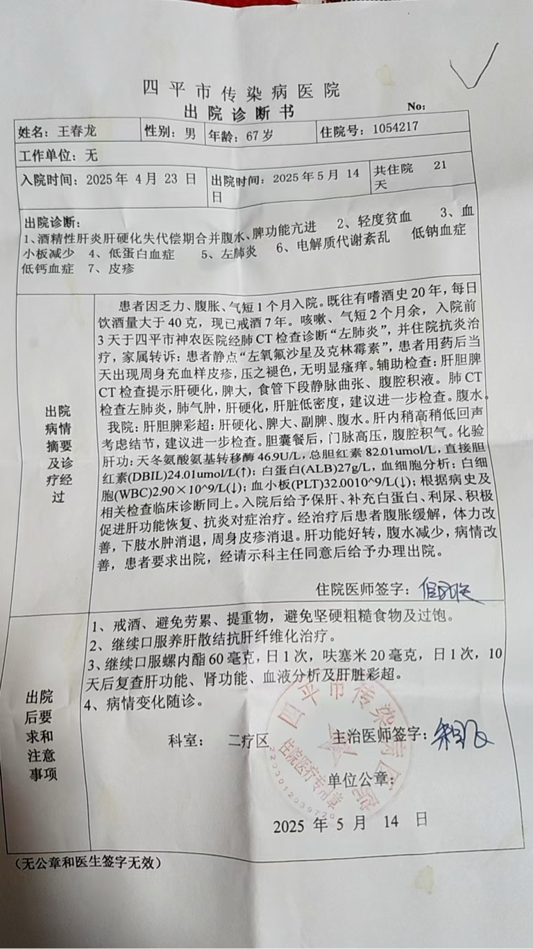 $盈新发展(SZ000620)$ 主力能否给一个涨停。这是我发小他爸的病例。急需用钱。本人也是条件有限。愿意将这一个涨停赚的钱给我发小暂时渡过燃眉之急。。希望主力有真情在