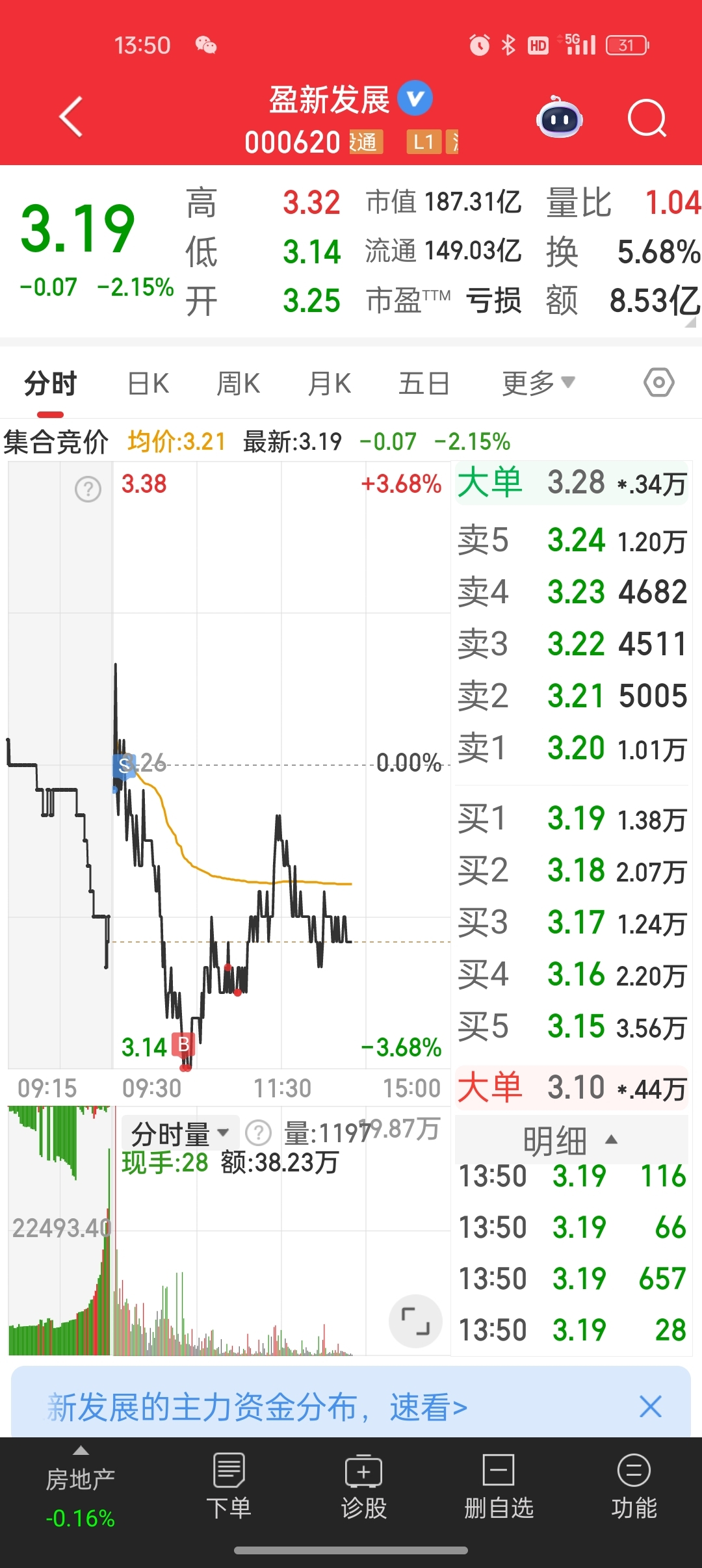 $盈新发展(SZ000620)$ 鄙人不才,全仓买入,杠杆拉满。今日基操已完成,成本3.061,仓位100%,晒图如下