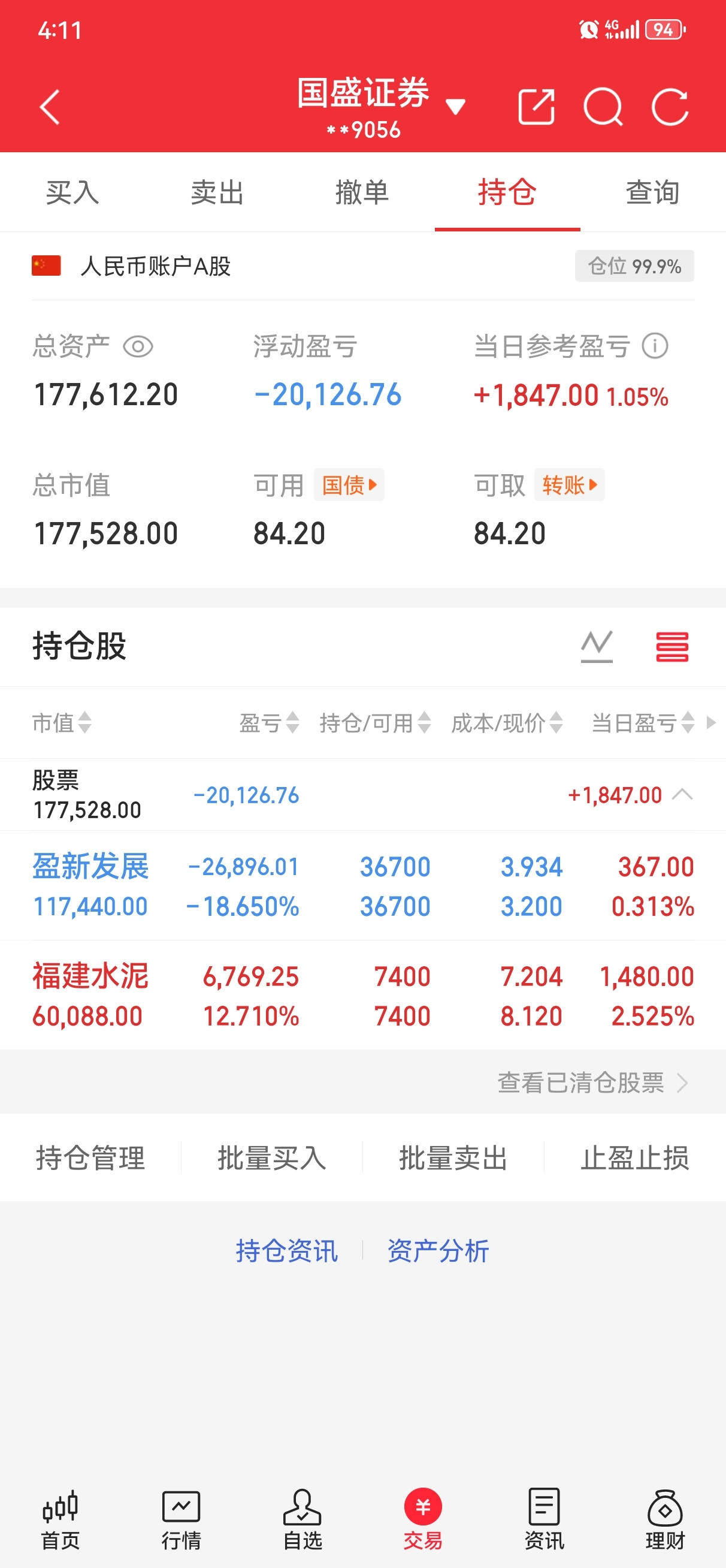 $盈新发展(SZ000620)$ 三阳还有二天明天加速了,做T不会只能放着了