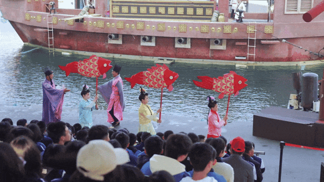 机器人博物馆中现代科技的成就,激发学生对科技与人文关系的思考;《黑石远渡》通过现代舞台技术,重现唐代商船远航的海丝之路壮举,特技演员的惊险表演与逼真的舞台效果,让学生仿佛亲历那段波澜壮阔的历史。