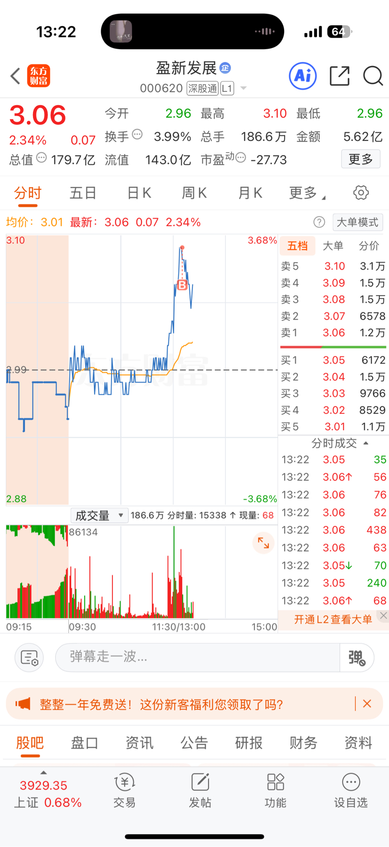 $盈新发展(SZ000620)$ 70仓位309好慌