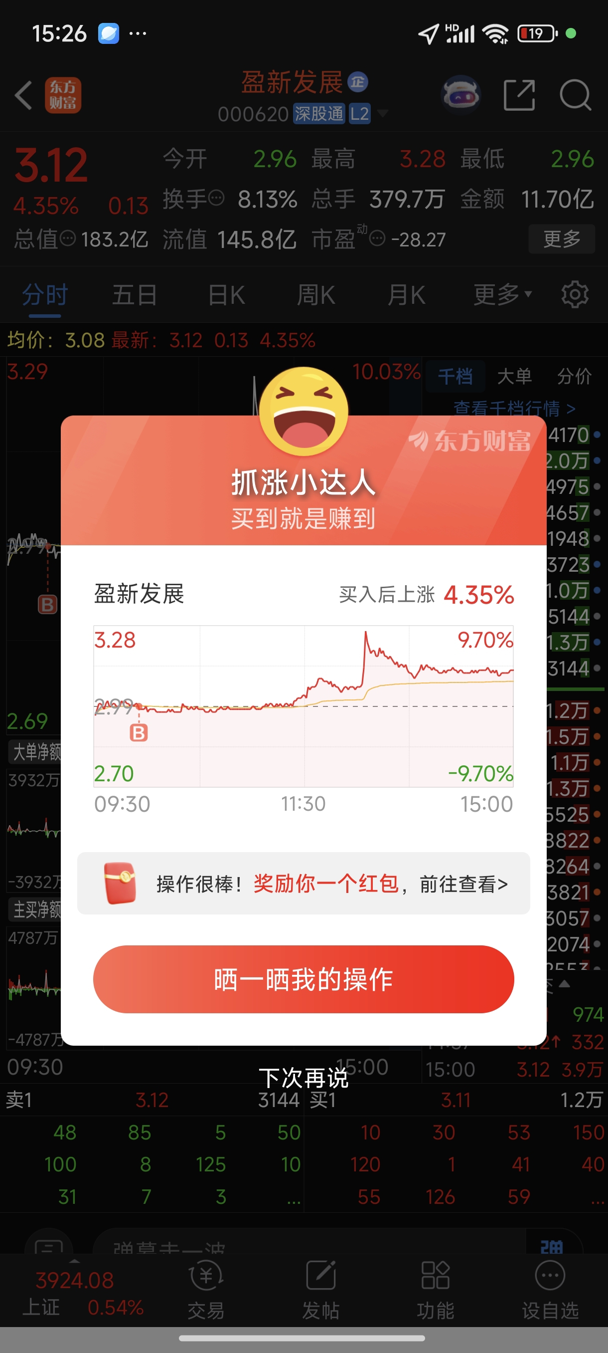 $盈新发展(SZ000620)$ 差一分钱就涨停了,竟然又下来了
