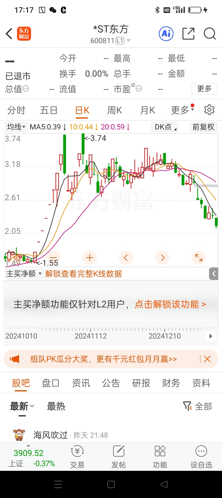 $盈新发展(SZ000620)$ 都跟你们说了,跟东方集团一个走势,东方集团吹上天的海水提钾