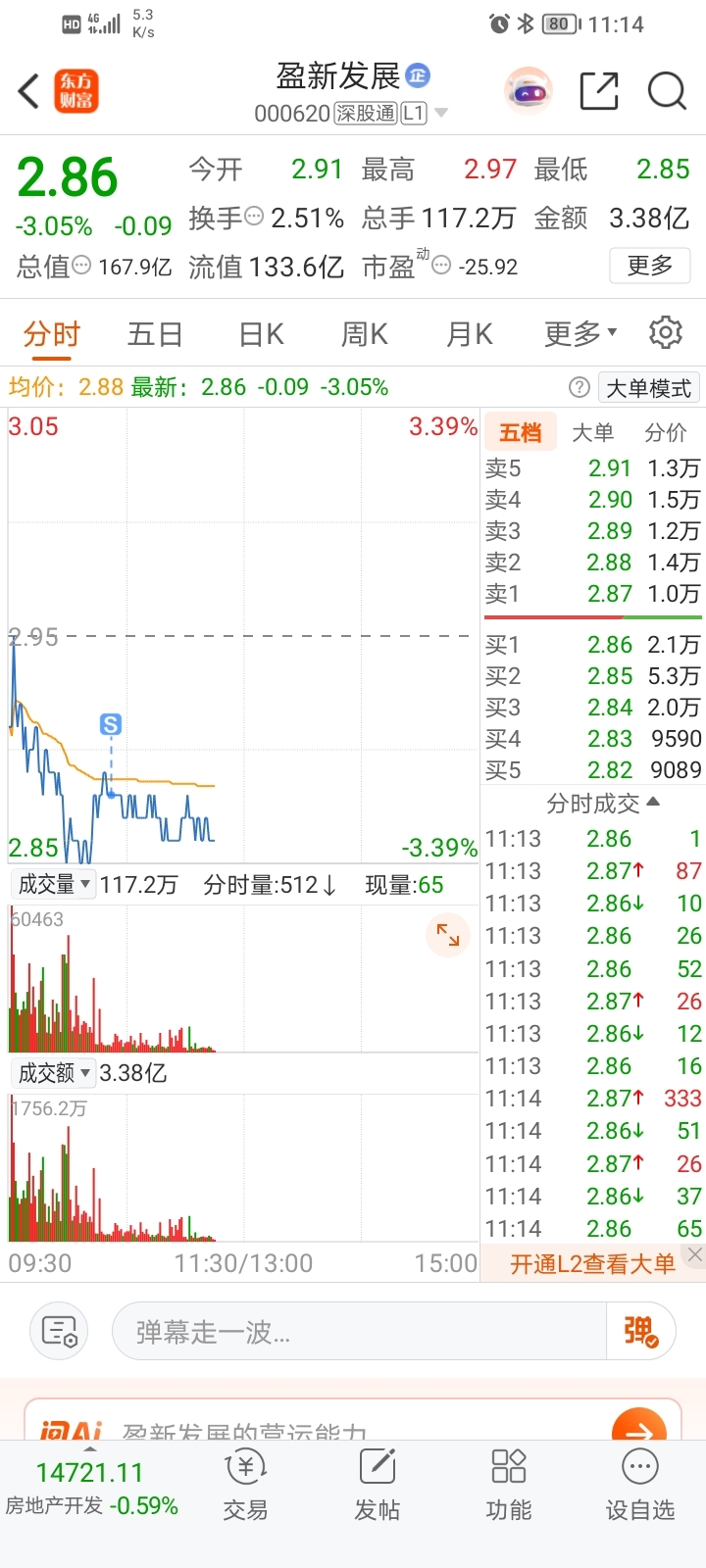 $盈新发展(SZ000620)$ 高点先卖出,等机会接回来