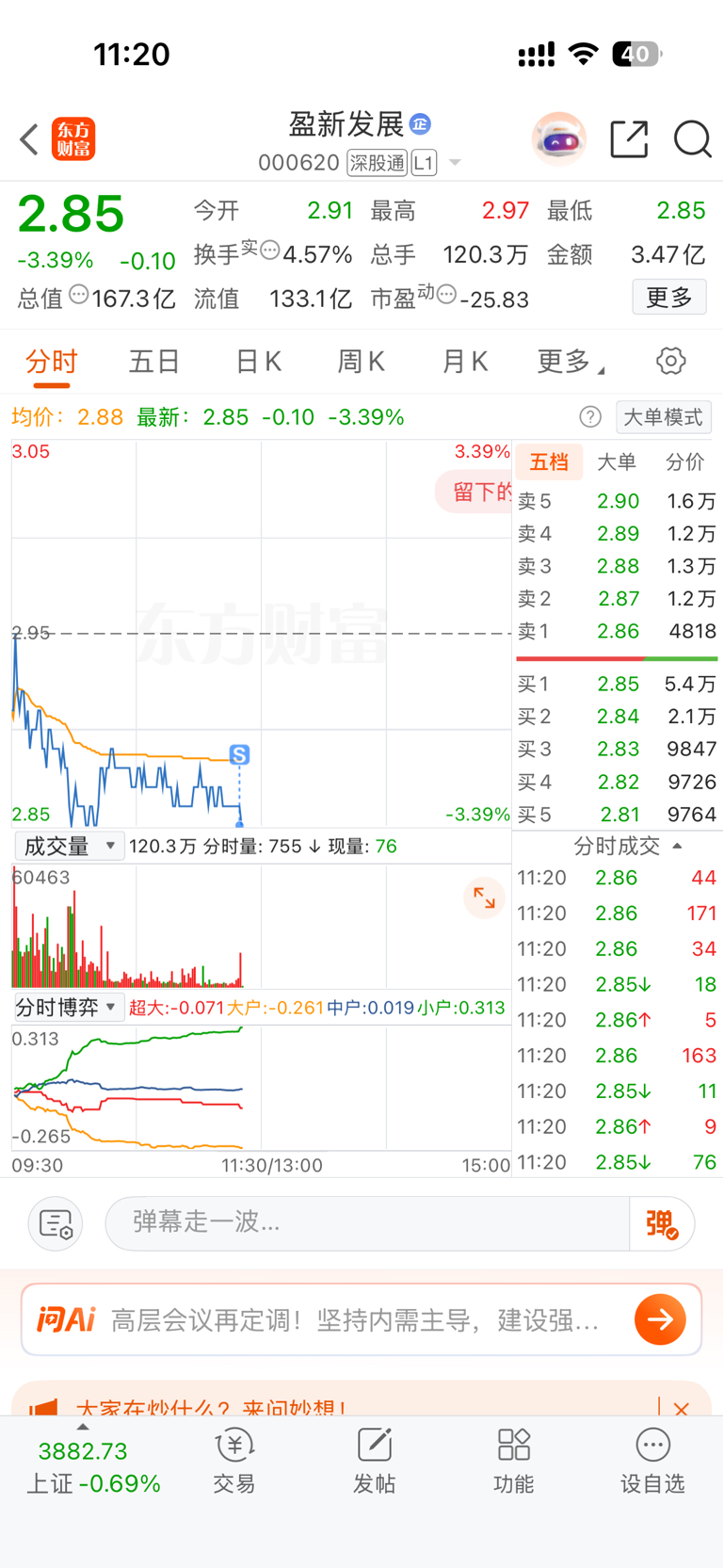 $盈新发展(SZ000620)$ 亏13个点走了 祝车上的兄弟们赚大钱