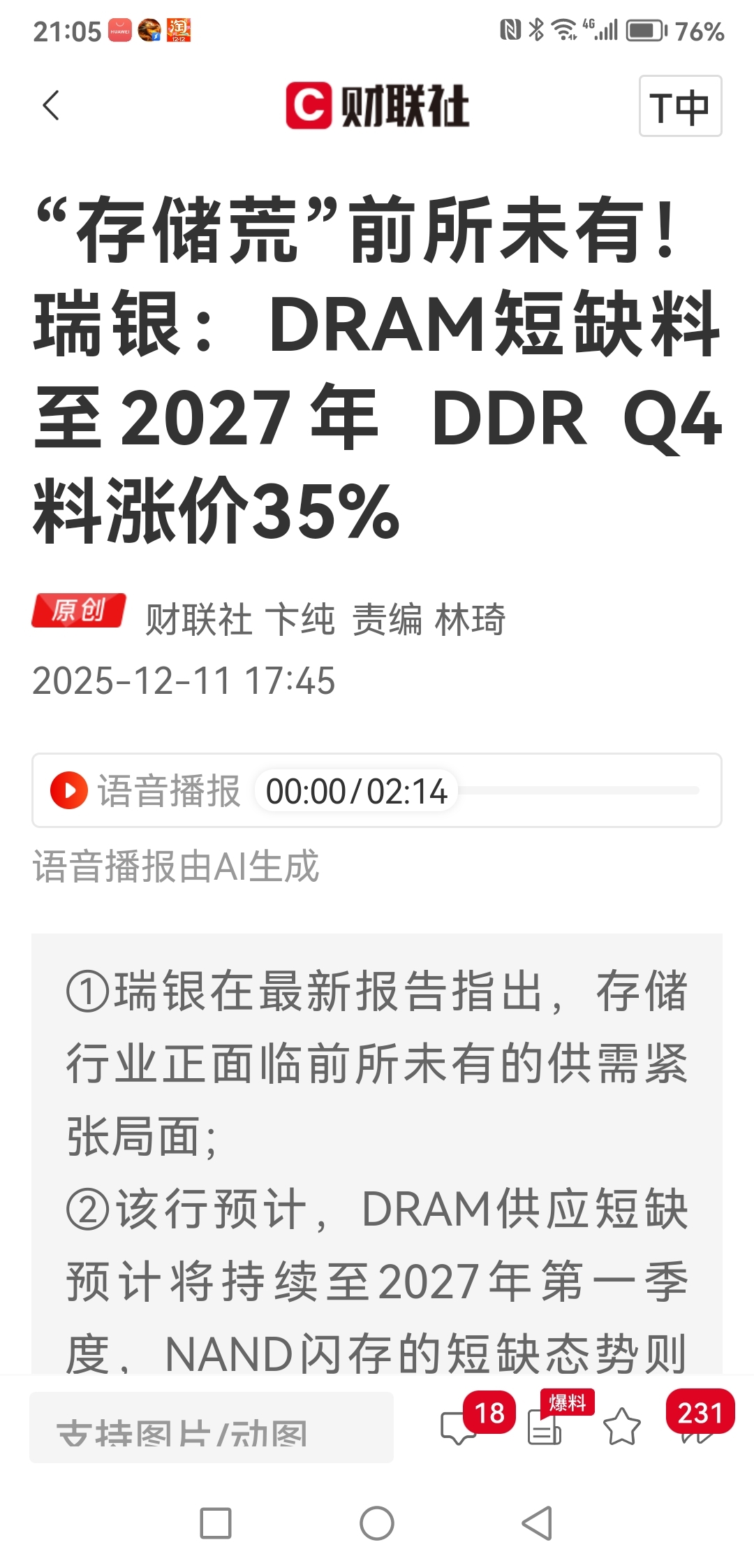 $盈新发展(SZ000620)$ 存储器严重缺芯涨价到27年,盈新明天涨停吧