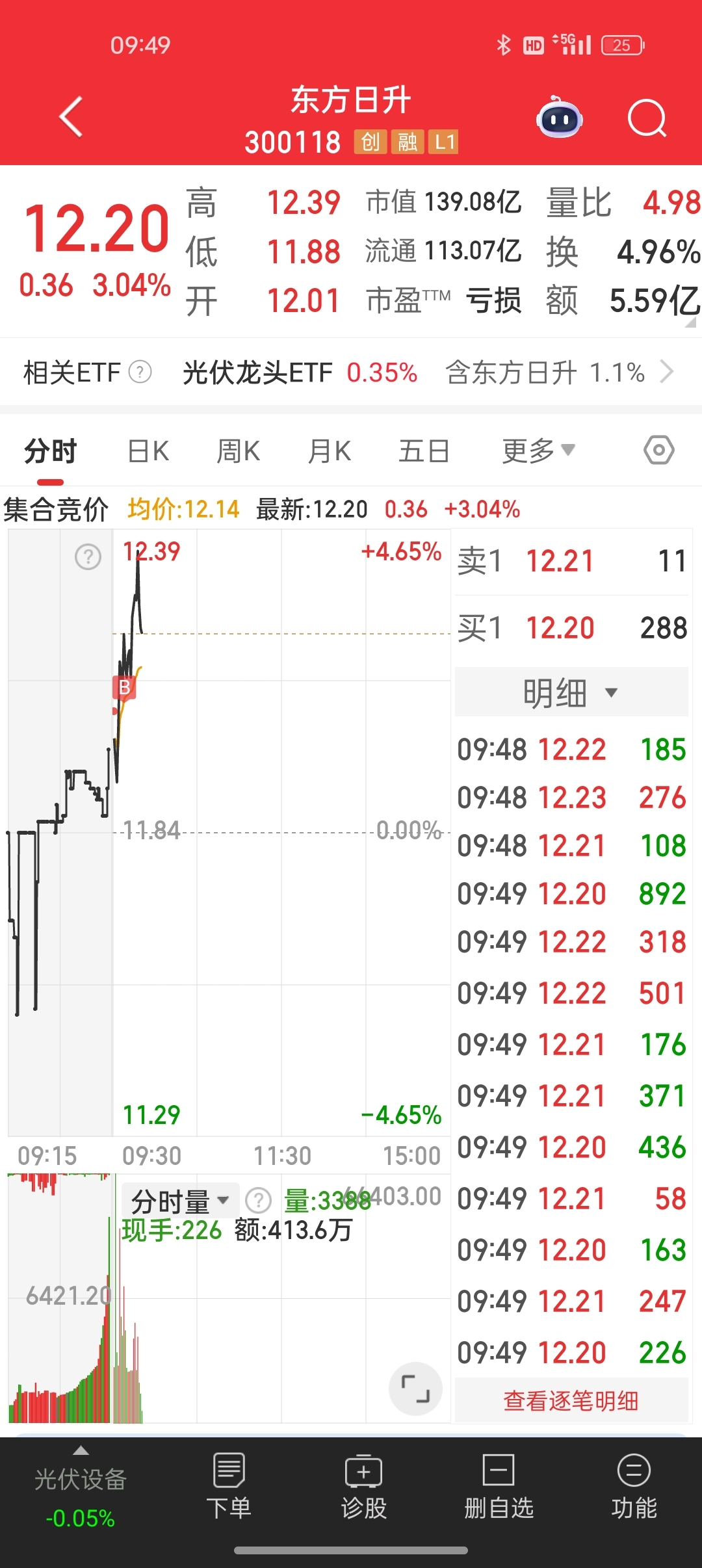 $盈新发展(SZ000620)$ 东方日升,投资日记(第3天)先提前庆祝东方日升今天反包涨停啦。昨天确实吓了一跳,尾盘先出了一部分,今天开盘形势比较好,怕飞了,涨停板挂单成交,仓位打满。鄙人不才,全仓买入,杠杆拉满。今日成本12.629,仓位100%。
