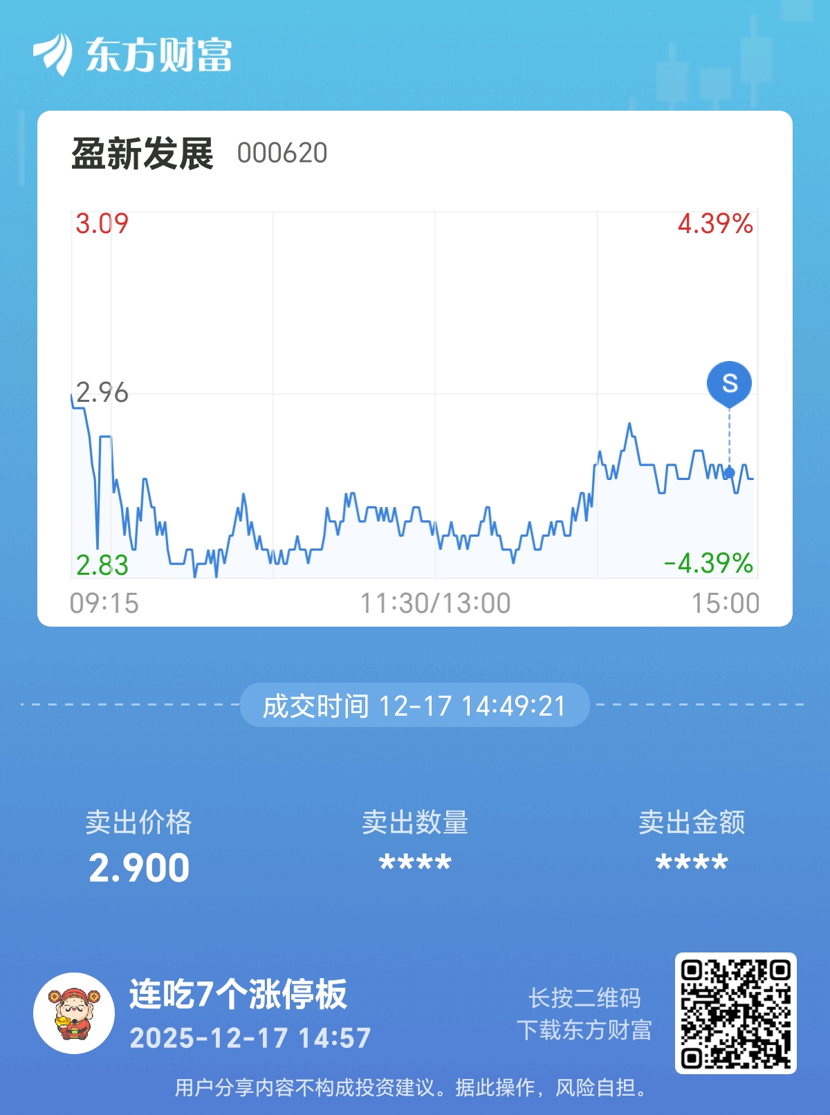 $盈新发展(SZ000620)$ 几分钱玩一天