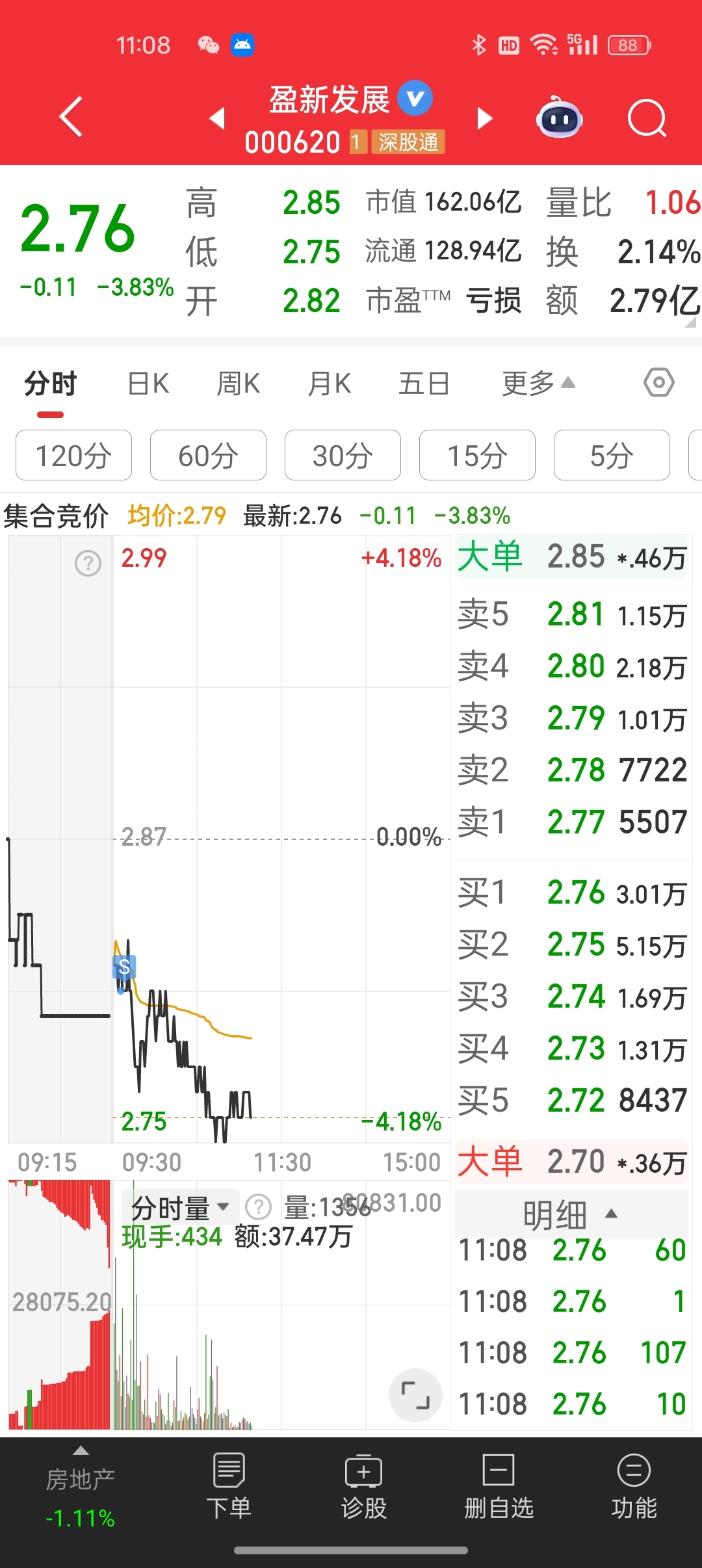 $盈新发展(SZ000620)$ 本来想得瑟一下,今天亏本走的,鄙人不才,晒图如下