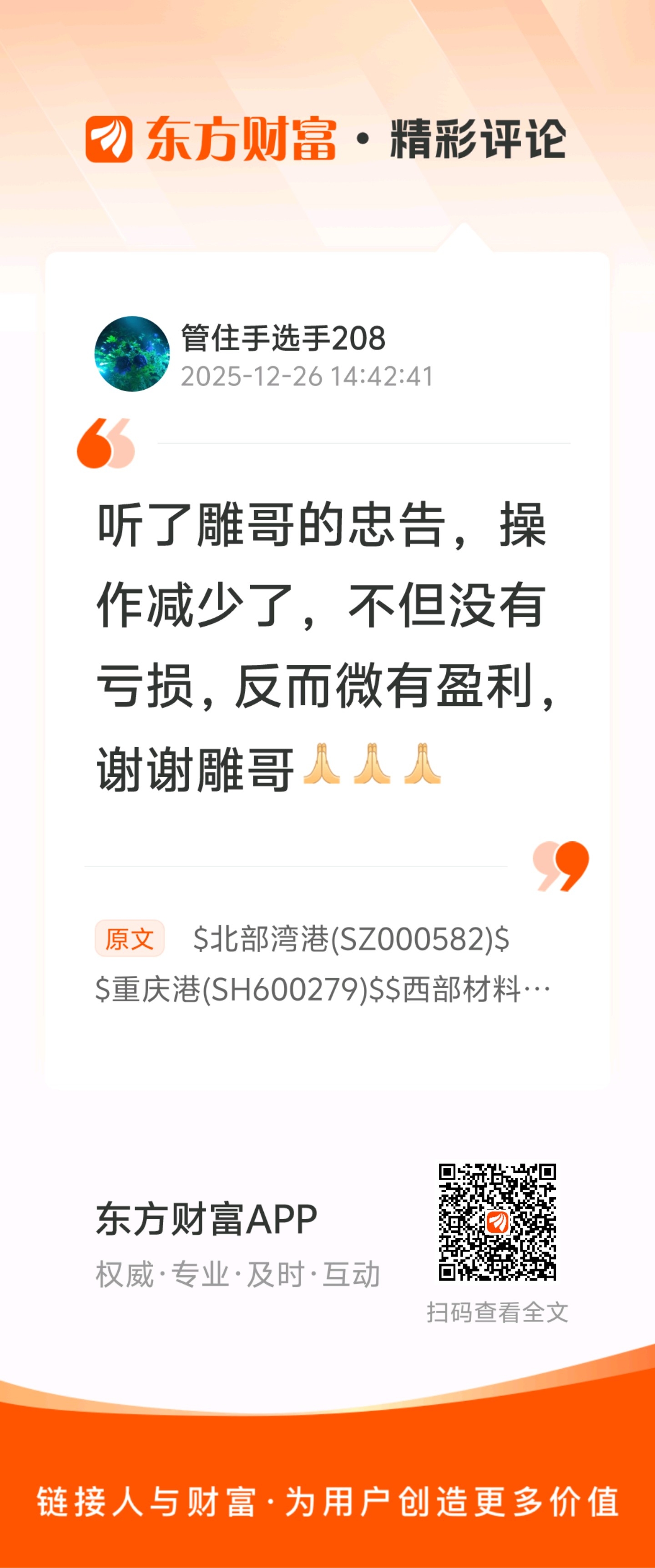 郑重声明:用户在财富号/股吧/博客等社区发表的所有信息(包括但不限于文字、视频、音频、数据及图表)仅代表个人观点,与本网站立场无关,不对您构成任何投资建议,据此操作风险自担。请勿相信代客理财、免费荐股和炒股培训等宣传内容,远离非法证券活动。请勿添加发言用户的手机号码、公众号、微博、微信及QQ等信息,谨防上当受骗!