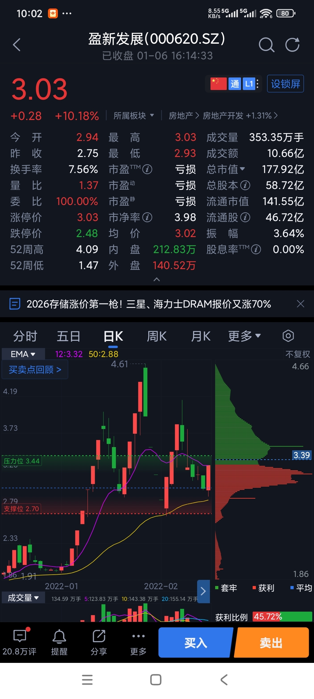 $盈新发展(SZ000620)$ 历史总是惊人的相似2022年的1月6