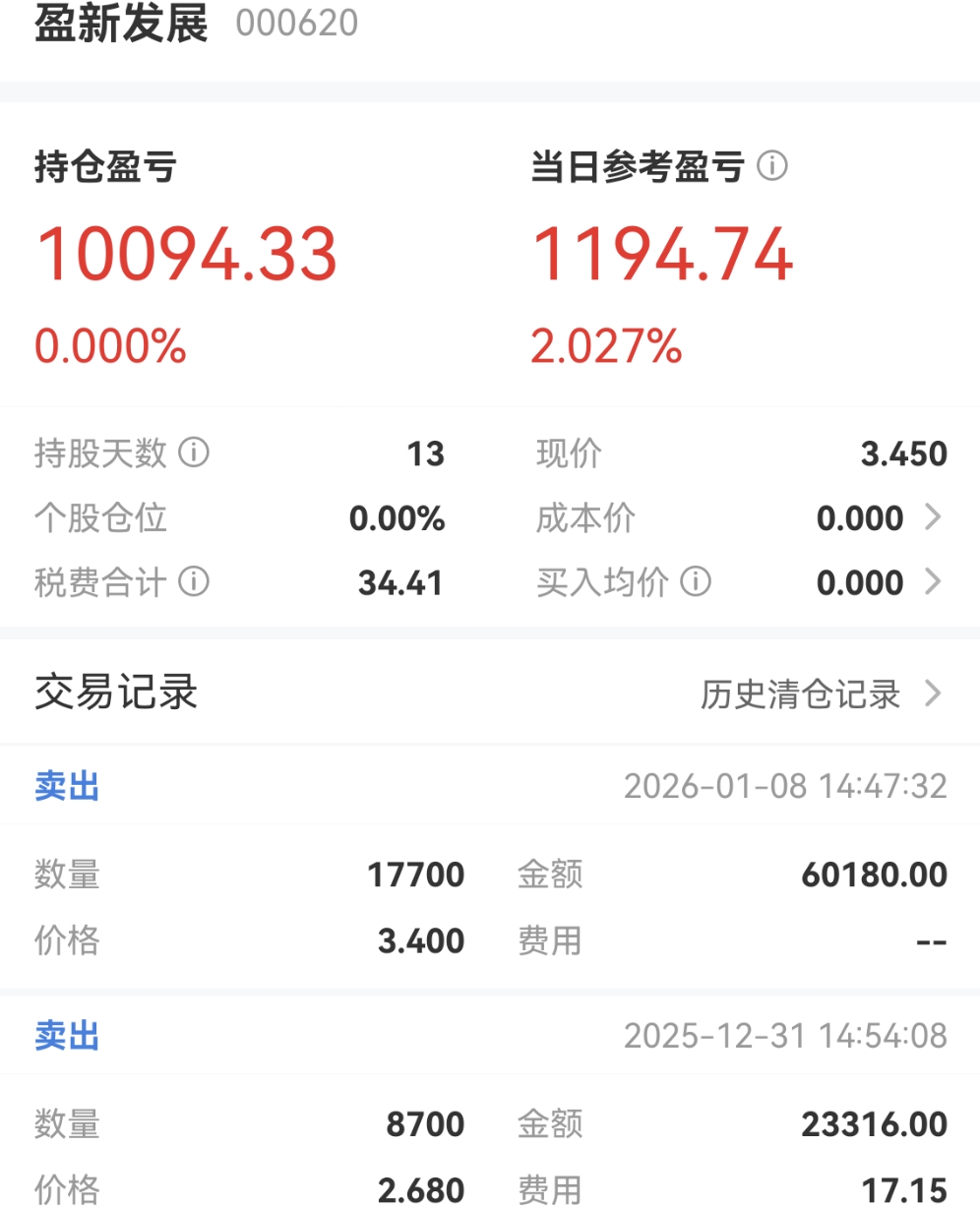 $盈新发展(SZ000620)$ 就这样了,早盘没卖以为能板,板不了就先收吧,回踩再进,保住利润最重要