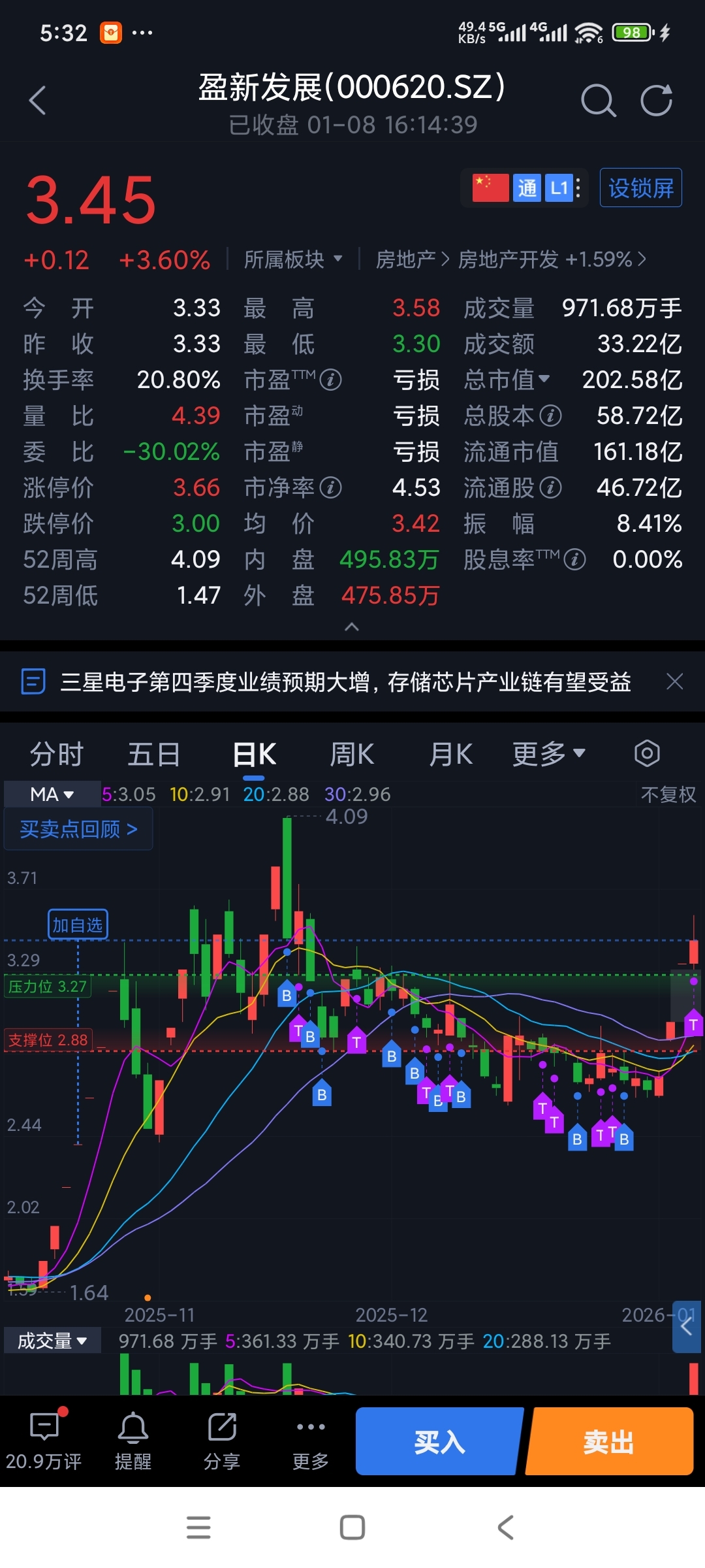 $盈新发展(SZ000620)$ 明天大跌我要加仓