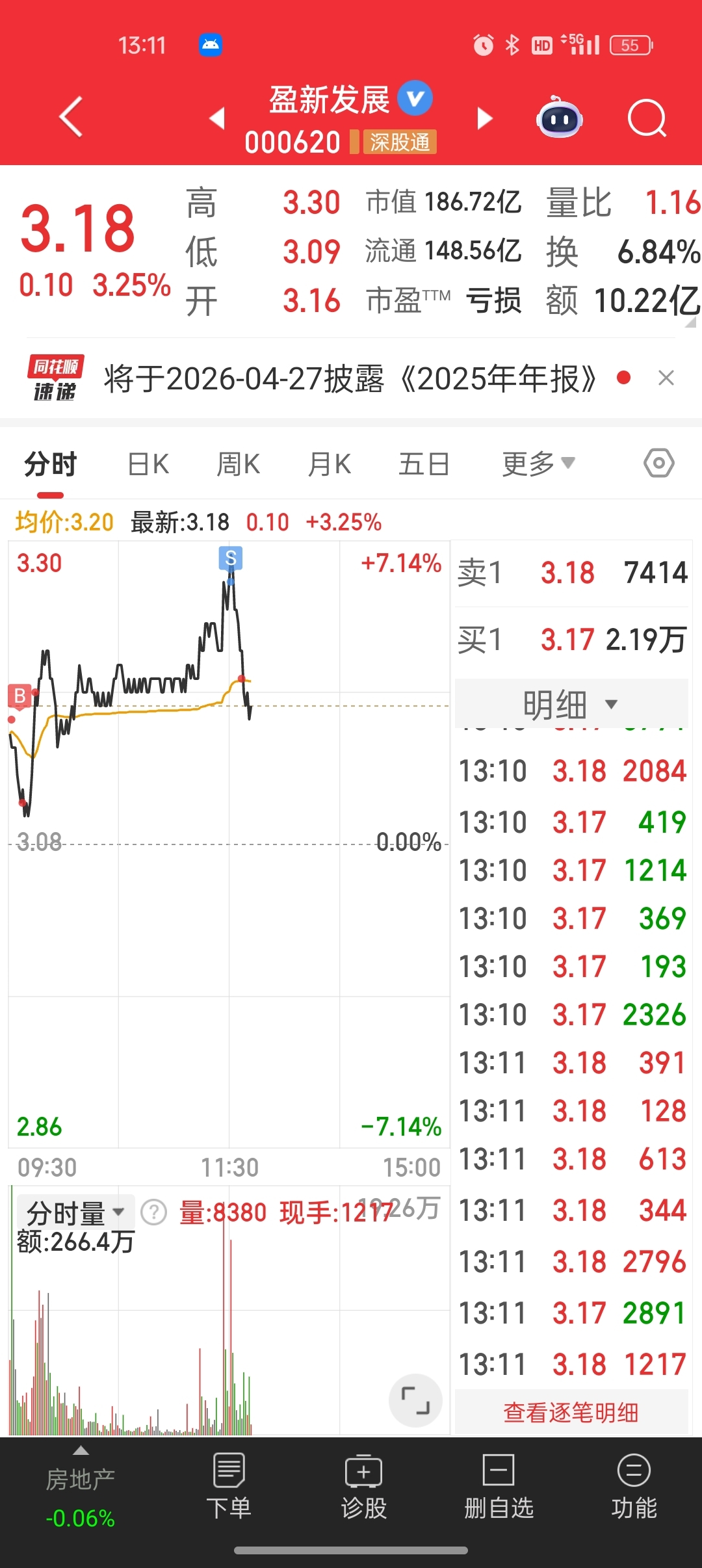 $盈新发展(SZ000620)$ 主力太狡猾,够狠,我成本太高,刚3.27卖了,3.20又接回来,博个小差价