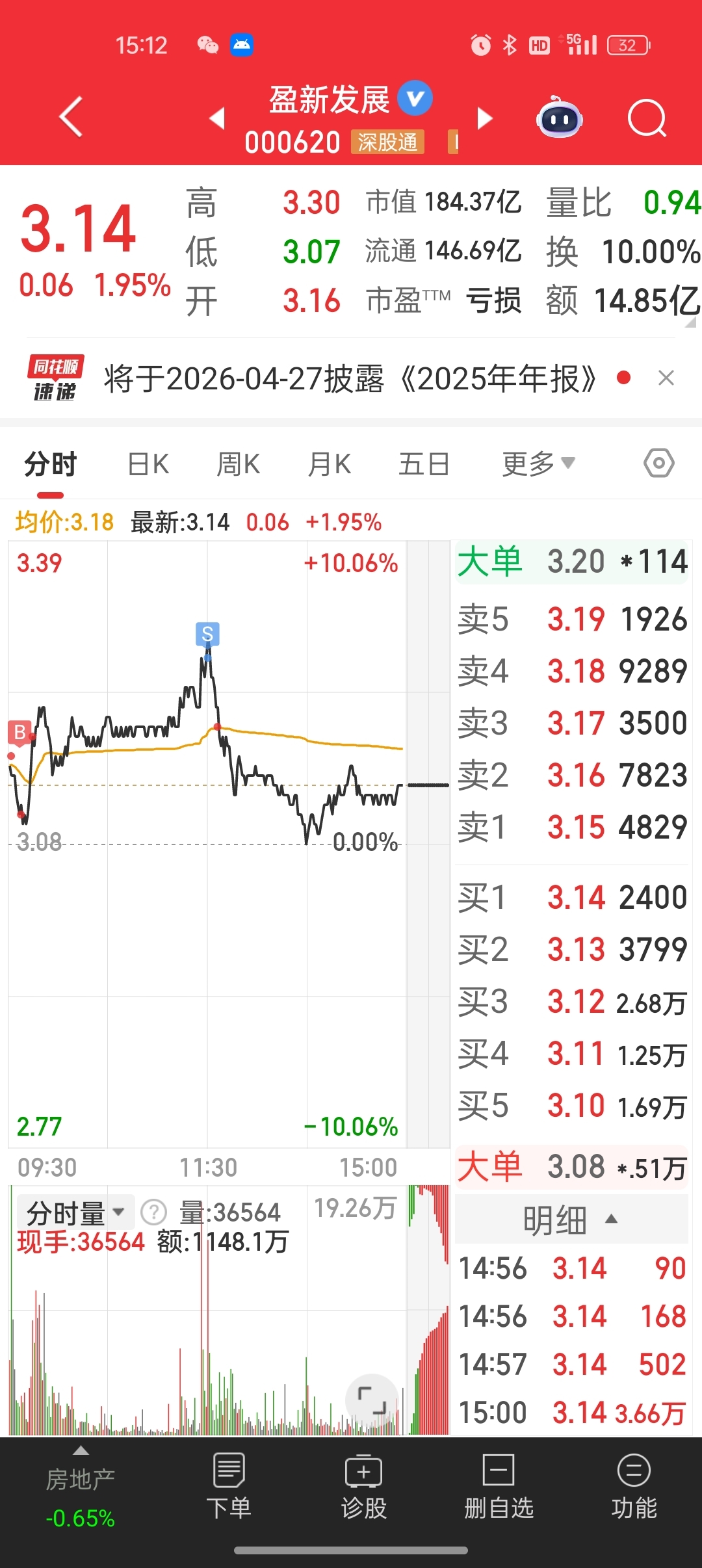 $盈新发展(SZ000620)$ 逃顶小能手,得瑟一下