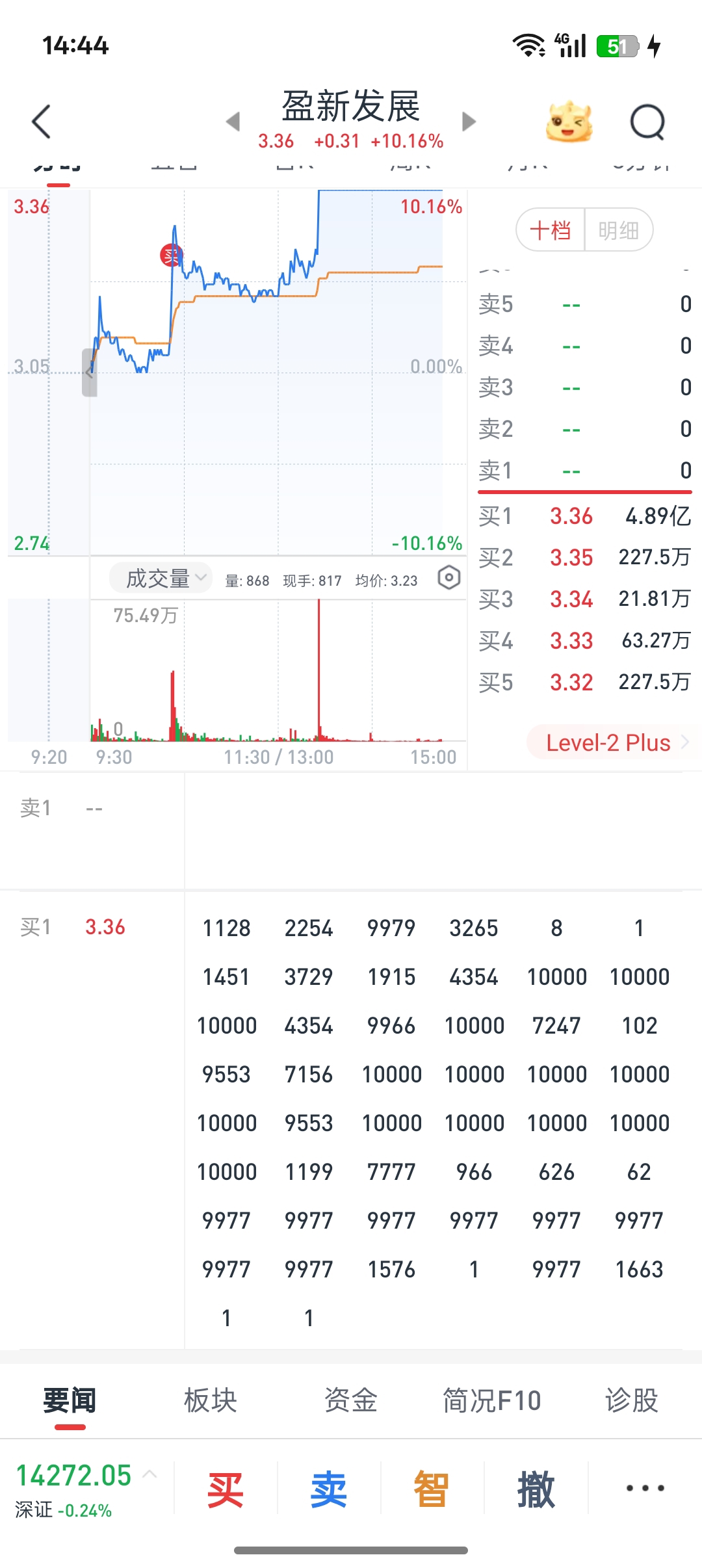 $盈新发展(SZ000620)$ 一手哥排不进去了