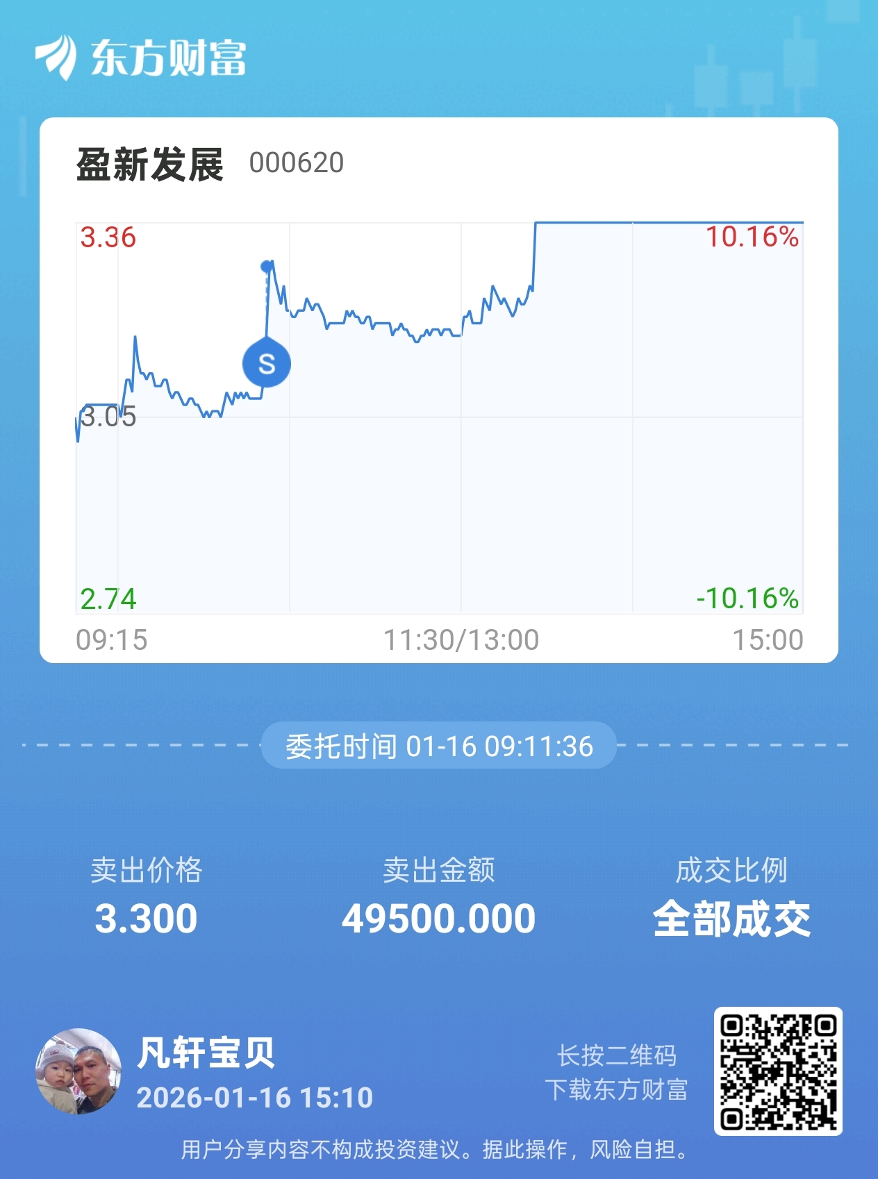 $盈新发展(SZ000620)$ 拿了两个月的票,一直没有动,最多亏19个点,赚8个点的时候也没动,今天自己打的这个价格也是着魔了,多1分也卖不出,见鬼了,不会错过主升浪行情吧?
