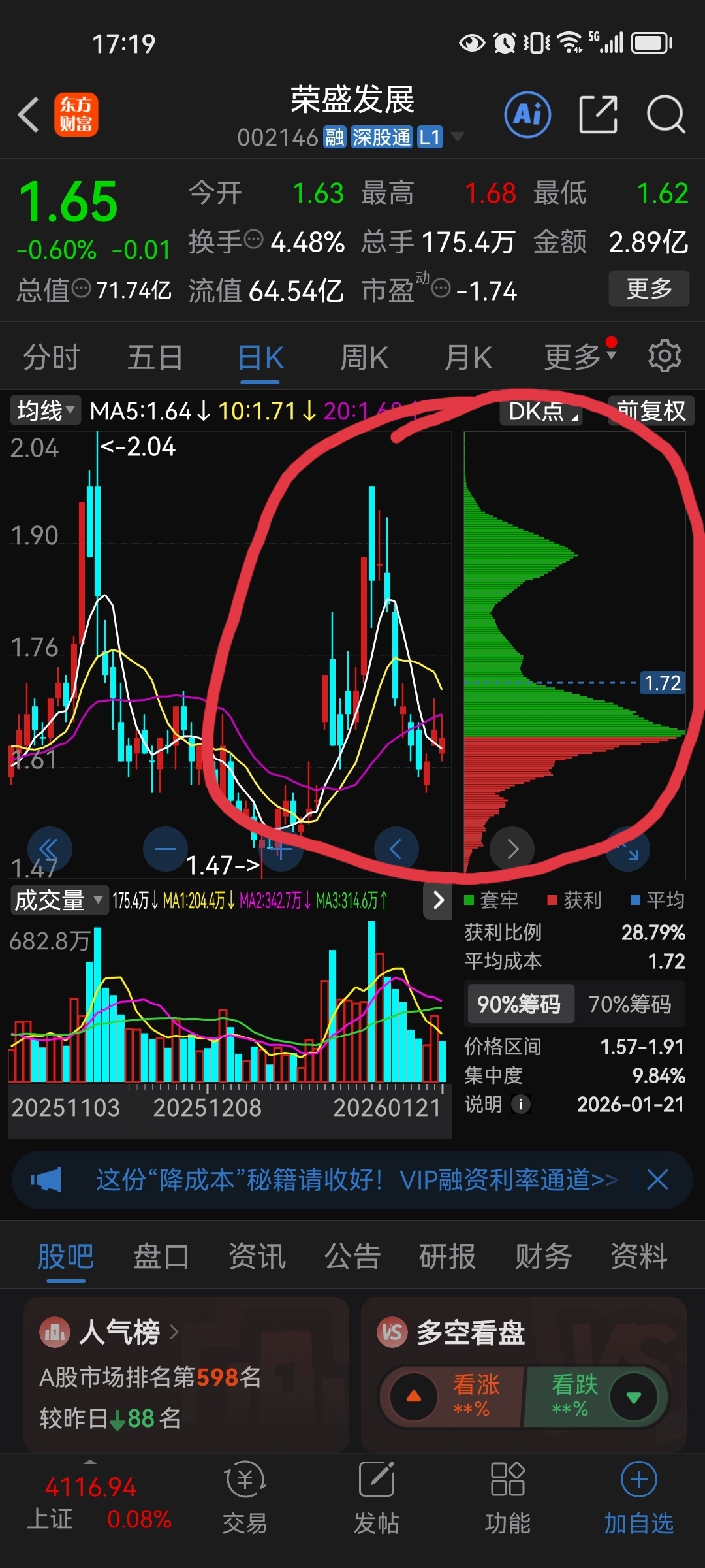 持仓盈新发展这么长时间,对该票还抱有一定的预期。今早高点出手,尾盘又接了回来。看