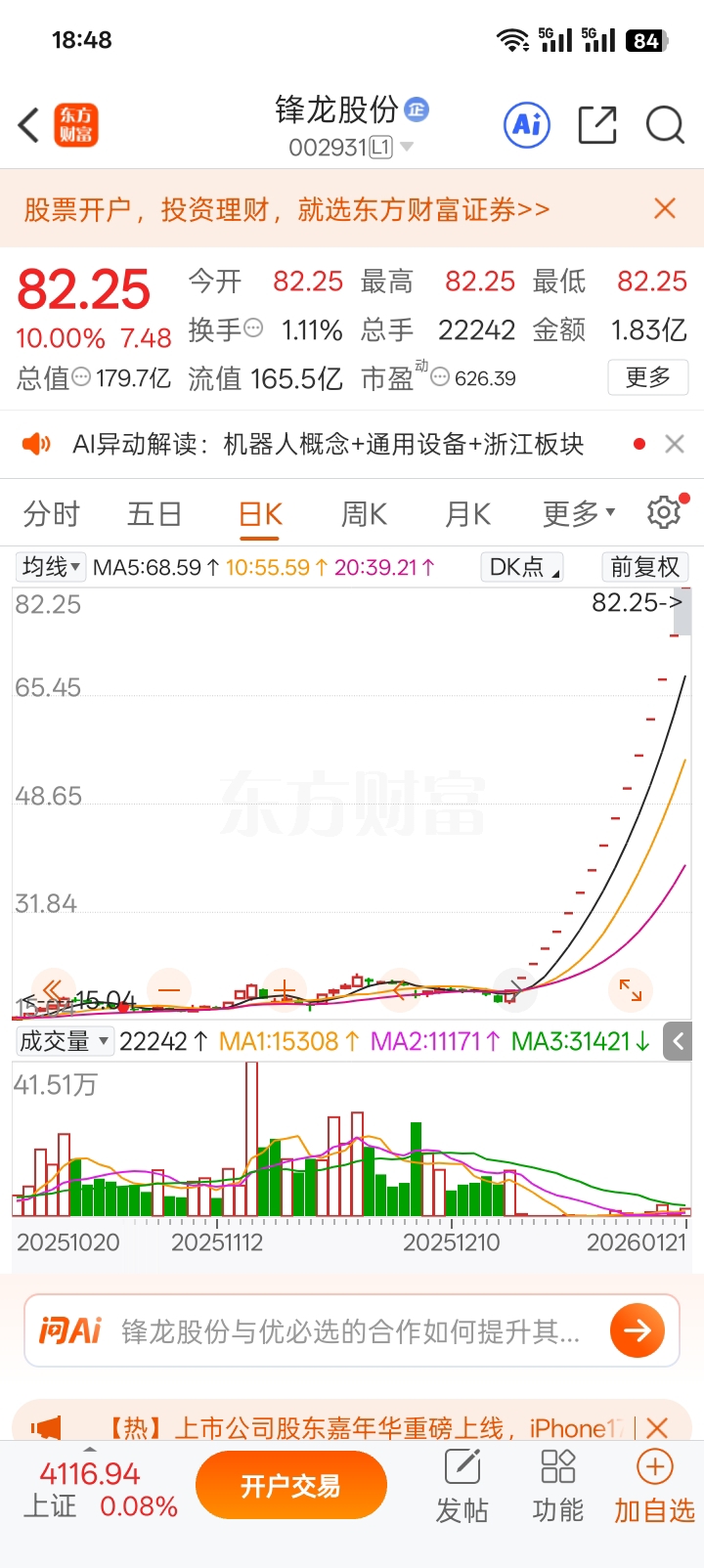 $盈新发展(SZ000620)$ 持有锋龙的该有多幸福啊