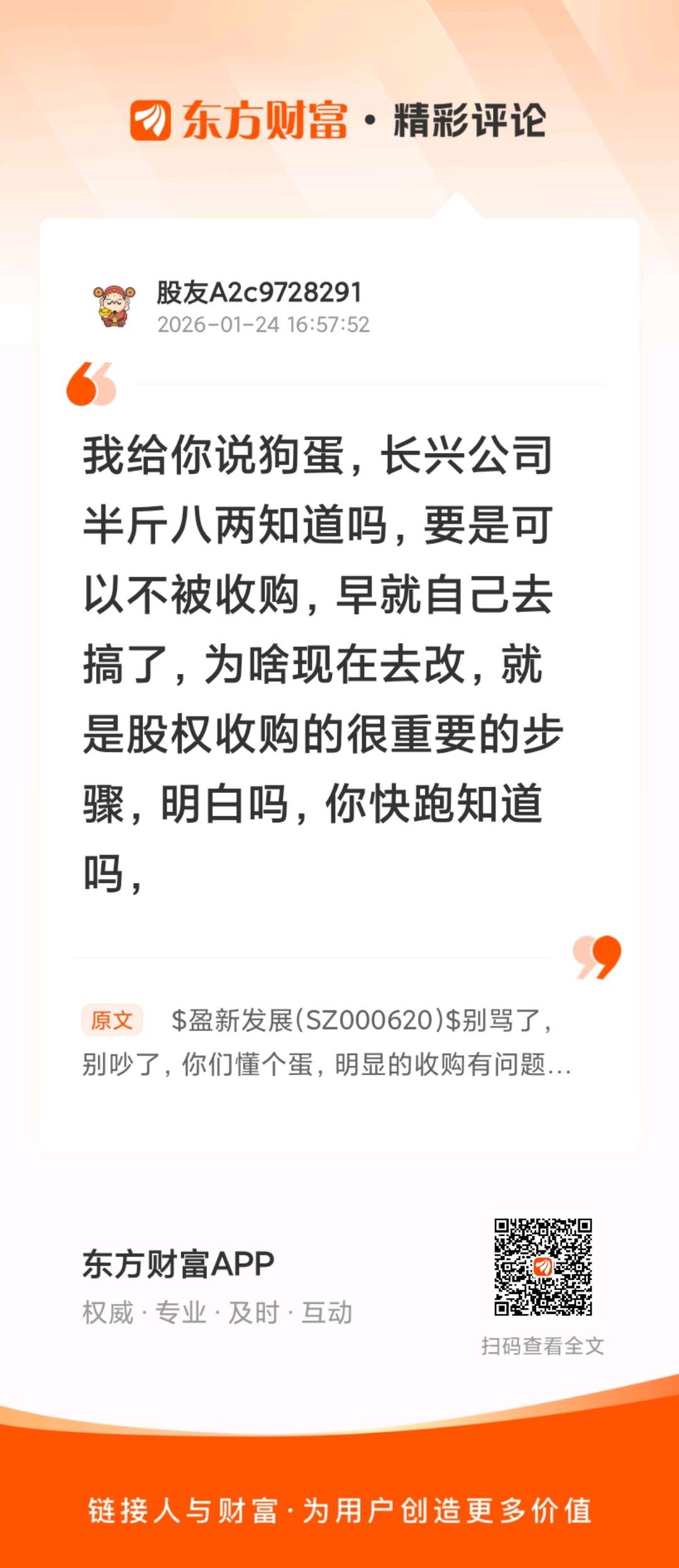 跑了没孙子,我开盘直接空仓了,今天你跑一股你都是我孙子知道吗?//@股友A2c9728291 :我给你说狗蛋,长兴公司半斤八两知道吗,要是可以不被收购,早就自己去搞了,为啥现在去改,就是股权收购的很重要的步骤,明白吗,你快跑知道吗,