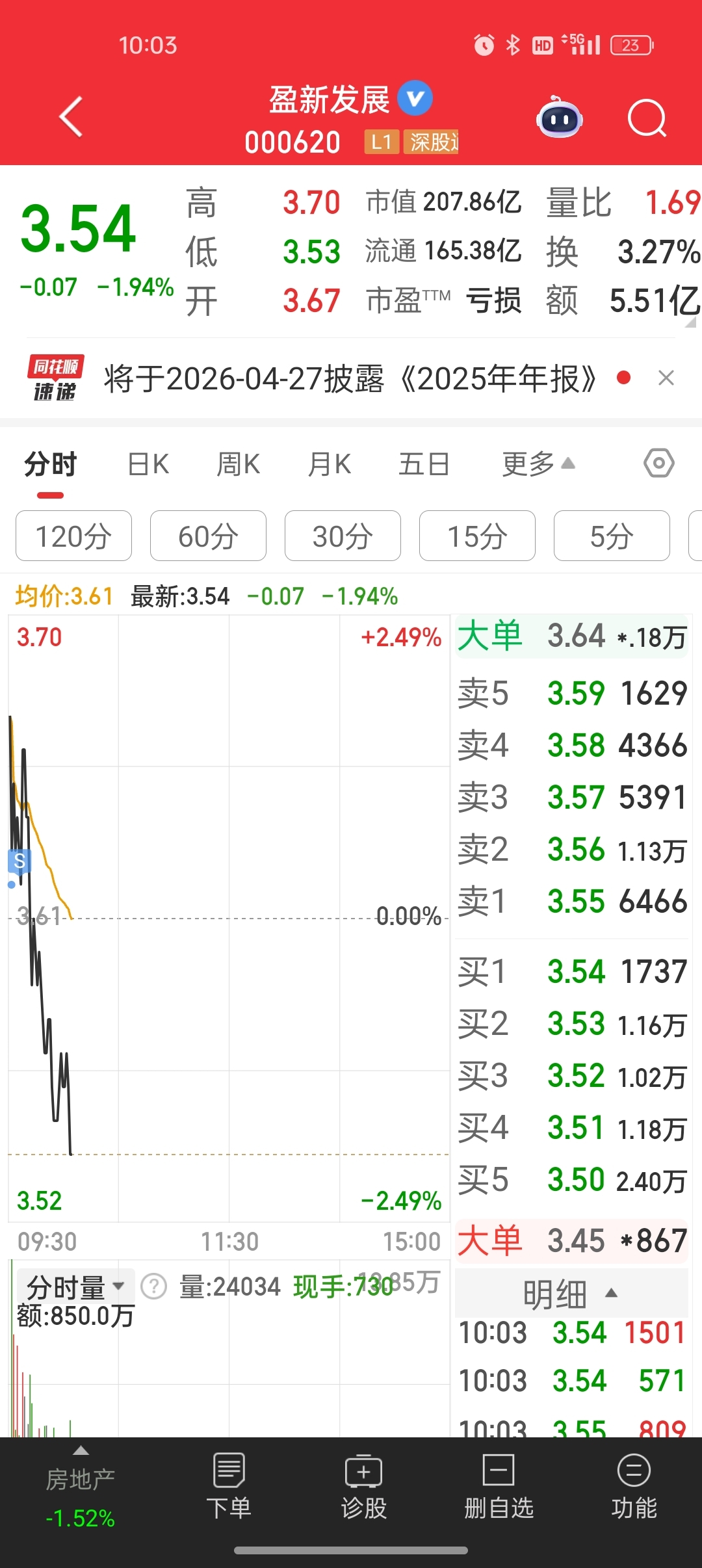 $盈新发展(SZ000620)$ 本来想得瑟一下卖最高点,没想到低于预期,果断清仓离场