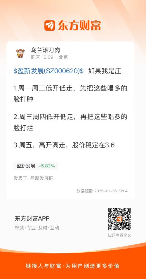 温馨提示: 1.根据《证券法》规定,禁止编造、传播虚假信息或者误导性信息,扰乱证券市场;2.用户在本社区发表的所有资料、言论等仅代表个人观点,与本网站立场无关,不对您构成任何投资建议。用户应基于自己的独立判断,自行决定证券投资并承担相应风险。《东方财富社区管理规定》