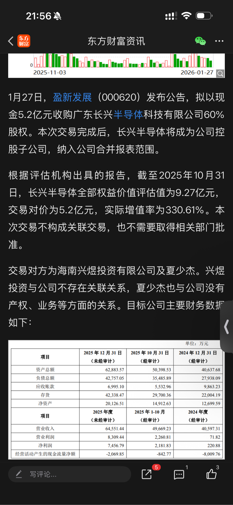 $盈新发展(SZ000620)$ 那么再给韭菜发一条注意看,长兴半导体的全部权益估值仅9.27个亿而已,你说要连板了凭什么?
