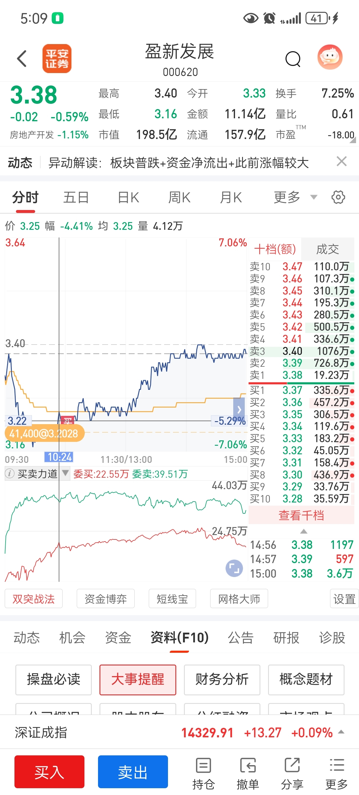 $盈新发展(SZ000620)$ 明天是地还是天,今天3.2刚进的41400股