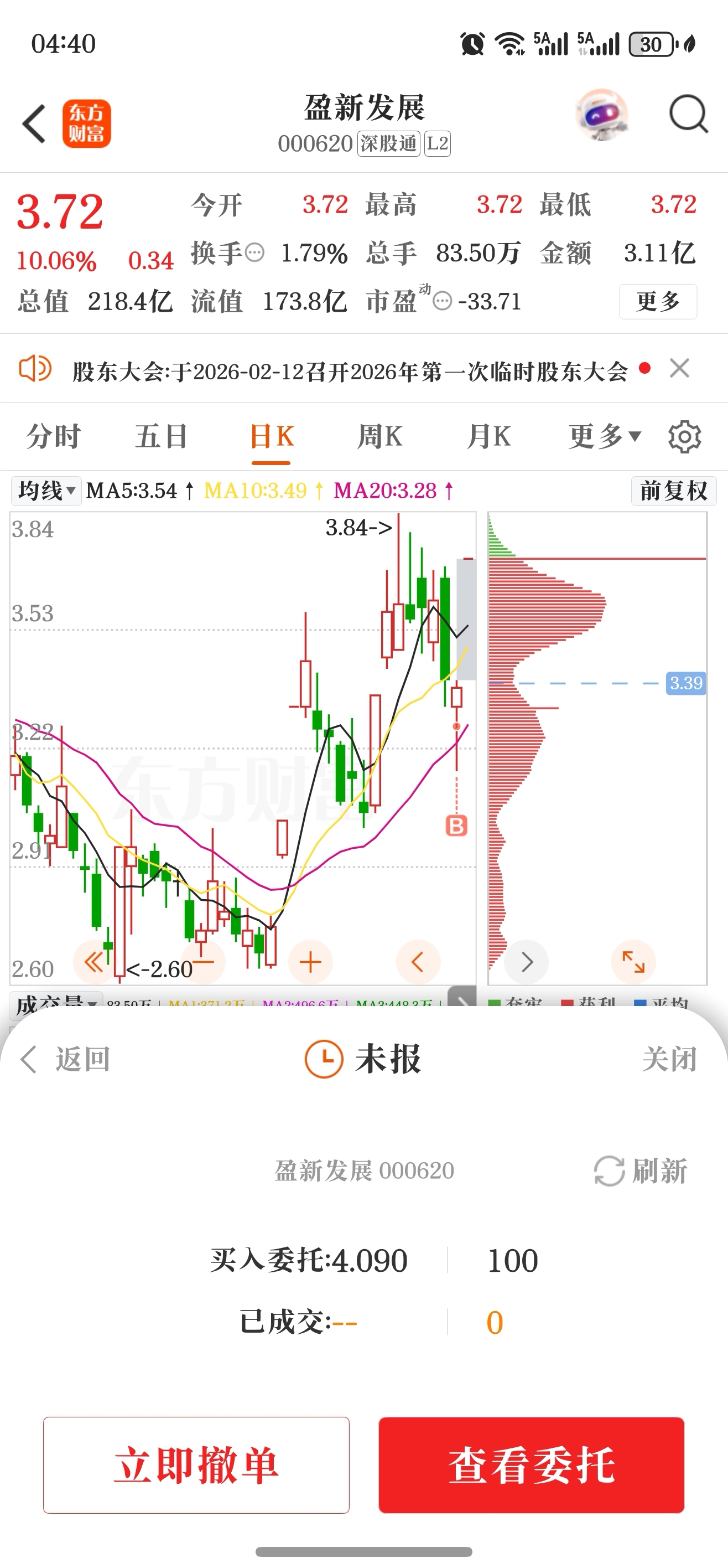 下午4点40挂了1手,看看明天能不能买进去