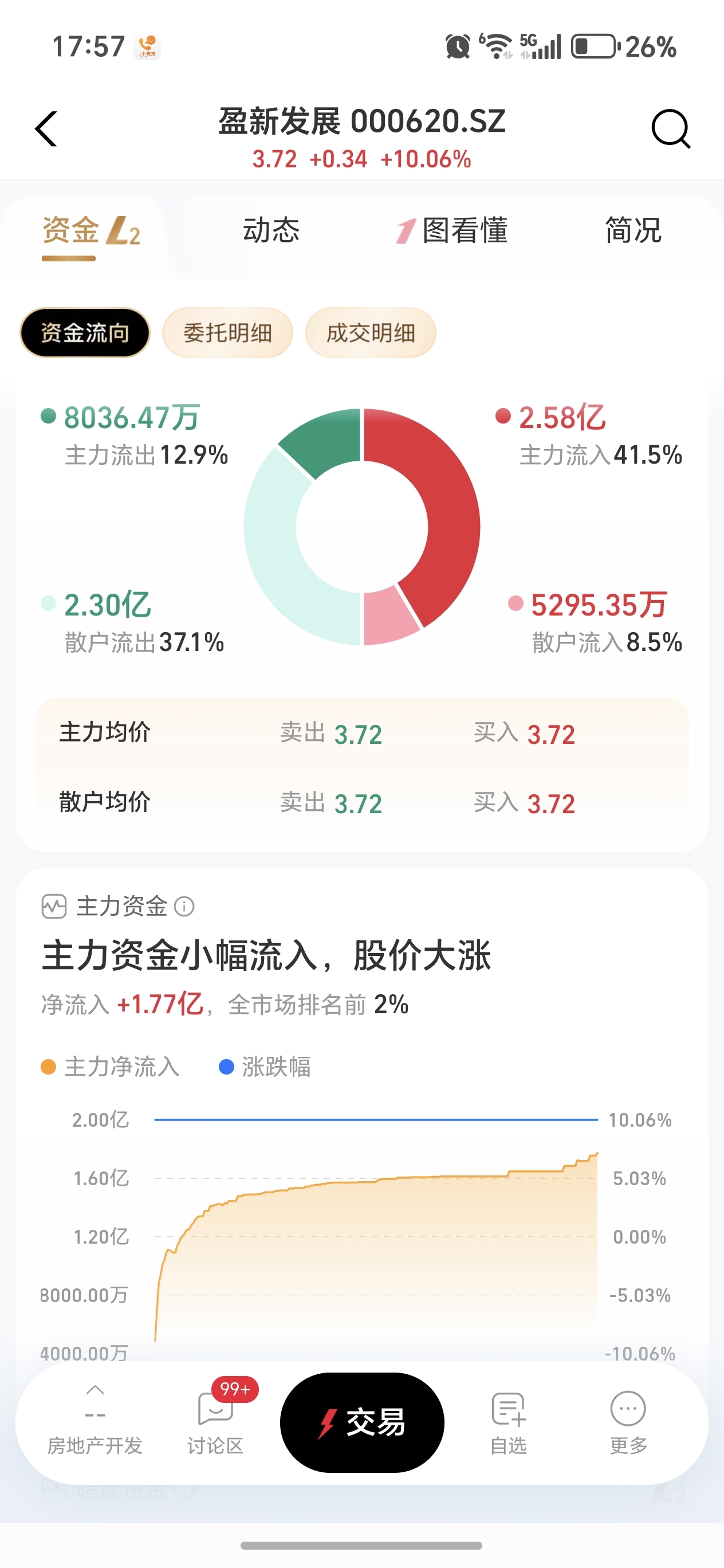 $盈新发展(SZ000620)$ 今天散户被劝走不少,也有少量进来的