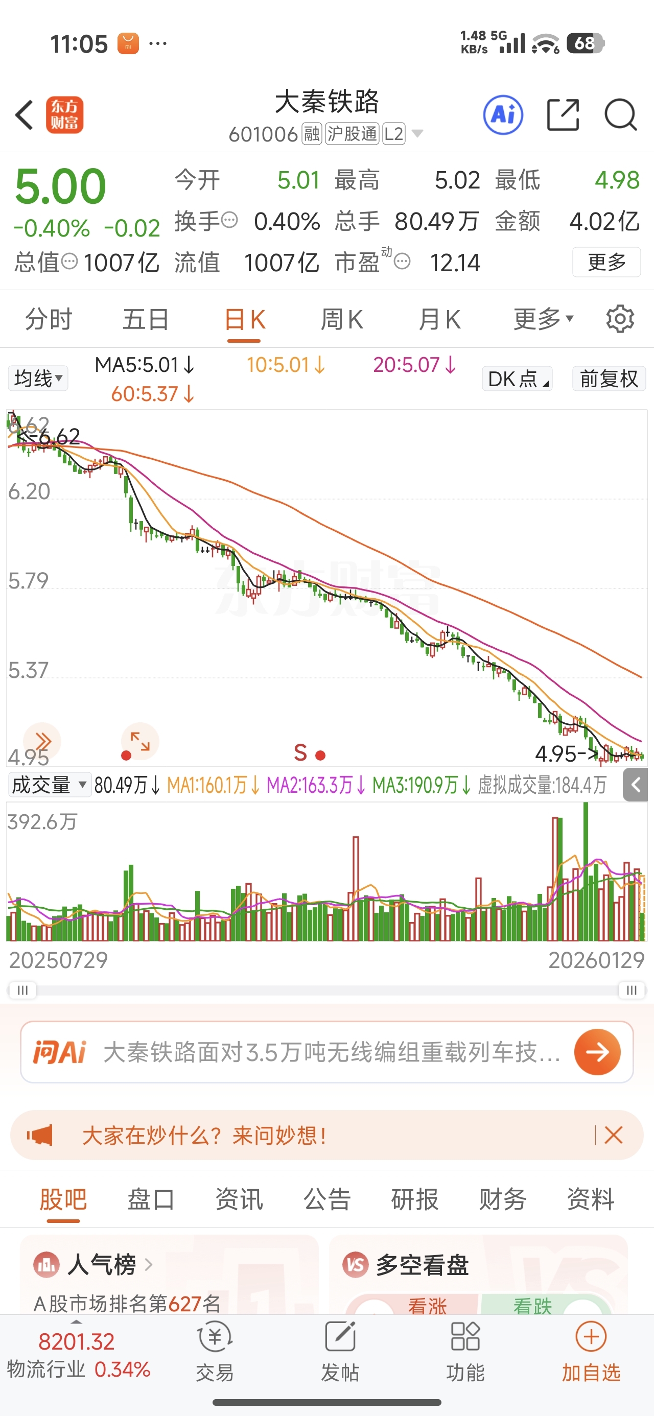 很多人说没有只跌不涨的股票,让你见识见识什么叫大秦亡了