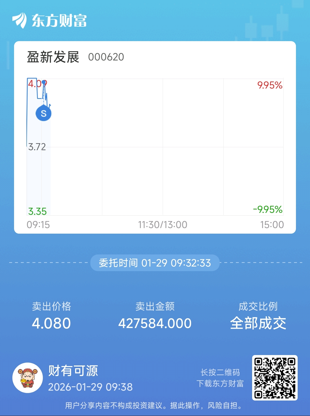 $盈新发展(SZ000620)$ 失望,没封住只能砍仓了