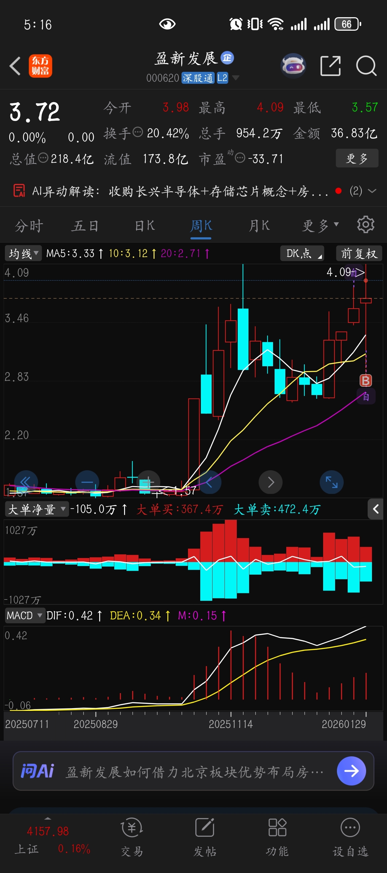 今天3.9以上成交毕竟在20个亿,一共成交36亿,个人觉得明天拉升涨停概率很大,