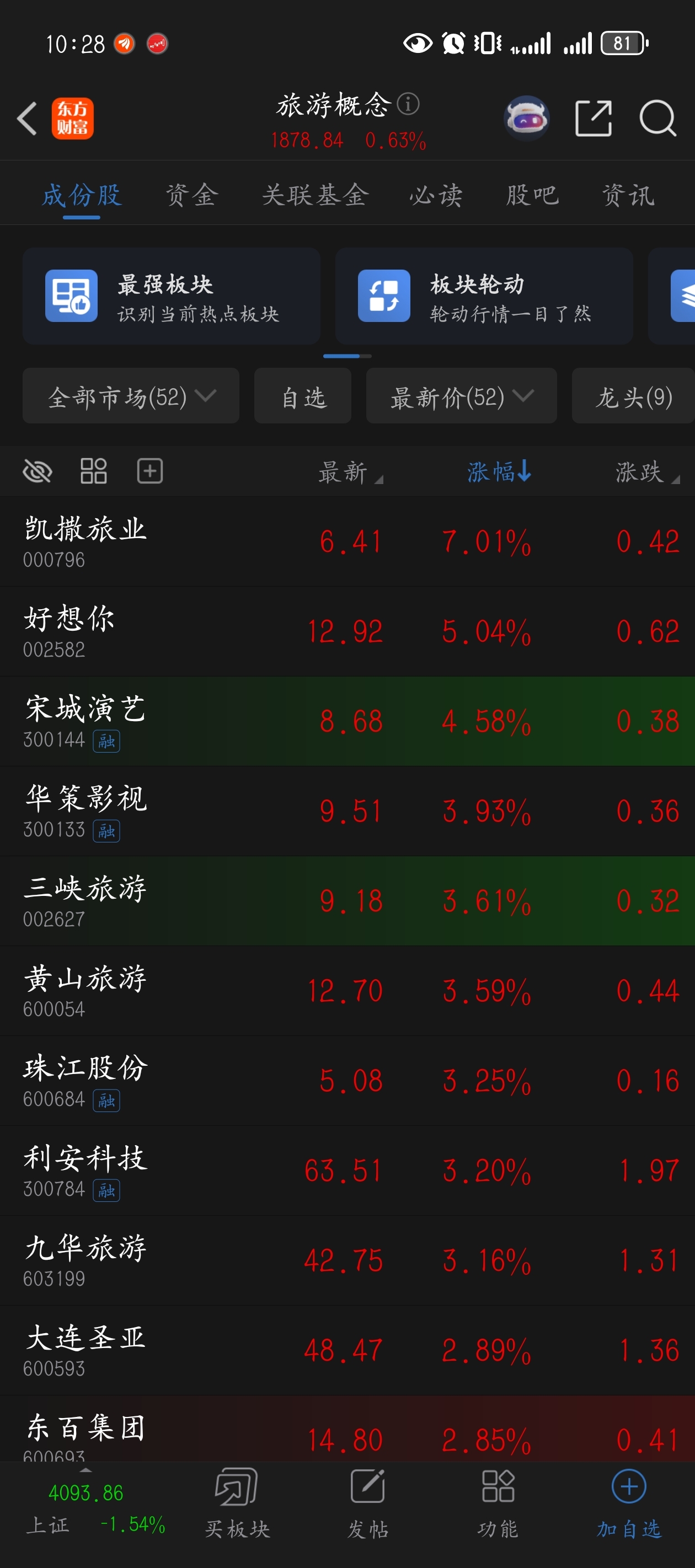 你说你是旅游,整个板块都在涨,而你跌的最多,