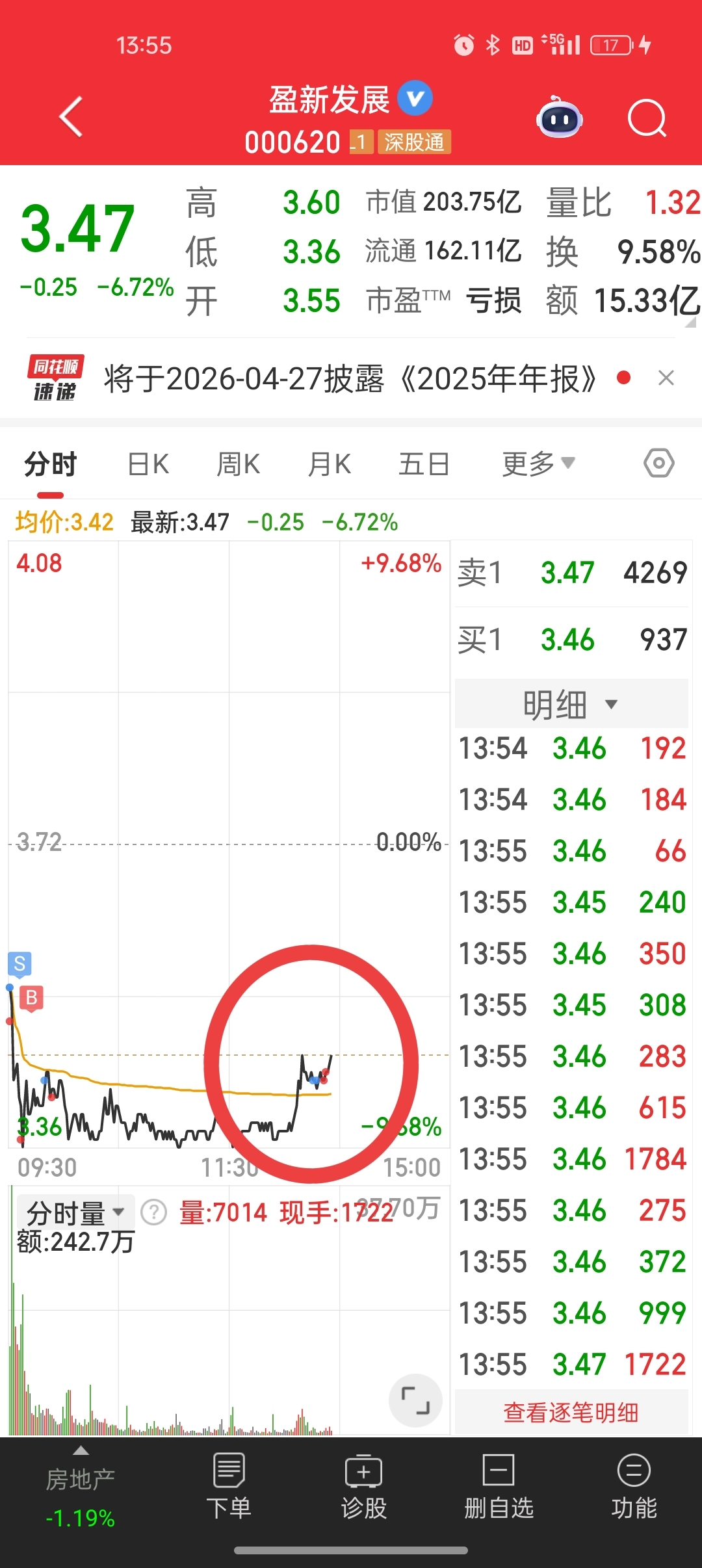 $盈新发展(SZ000620)$ 好险,本来挂卖单成交啦,感觉不对立马接回,险些踏空,加一点手续费心甘情愿,少动为妙啊