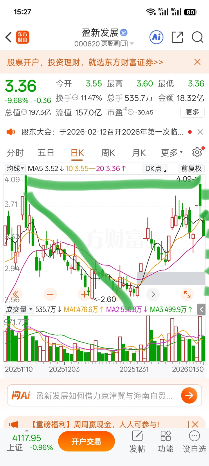 $盈新发展(SZ000620)$ 难不成要复制上次的4.09的点位吗