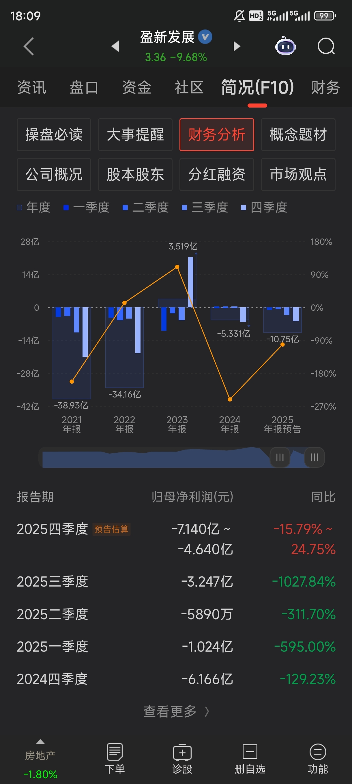 $盈新发展(SZ000620)$ 按照隔壁的统计这票四季度甚至没去年亏得多 至于之前那也应该早就消化了 要炒业绩的话三季度亏损这么多早就跌了为啥不跌好难猜啊