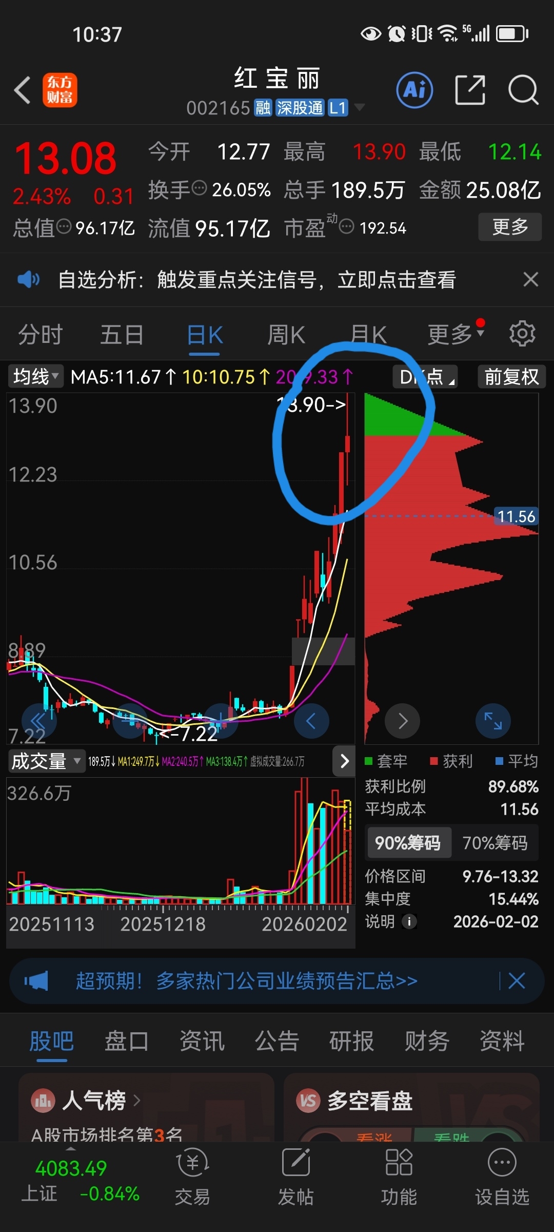 六二狗呢?老根想采访你一下:对红宝子近一日走势的看法…