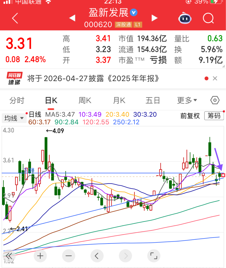 $盈新发展(SZ000620)$ 明天走势分析,各位少侠看看这么做图行不行