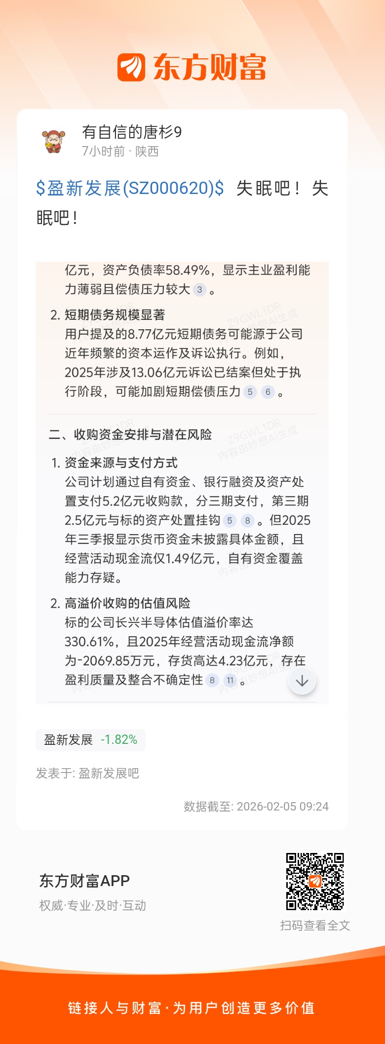 $盈新发展(SZ000620)$  失眠吧!失眠吧!