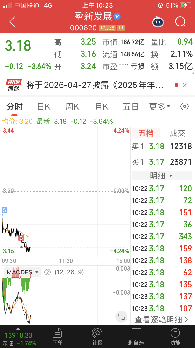 $盈新发展(SZ000620)$ 鄙人不才,全仓买入,杠杆拉满,成本降至3.191,仓位100%,今日基操已完成晒图如下