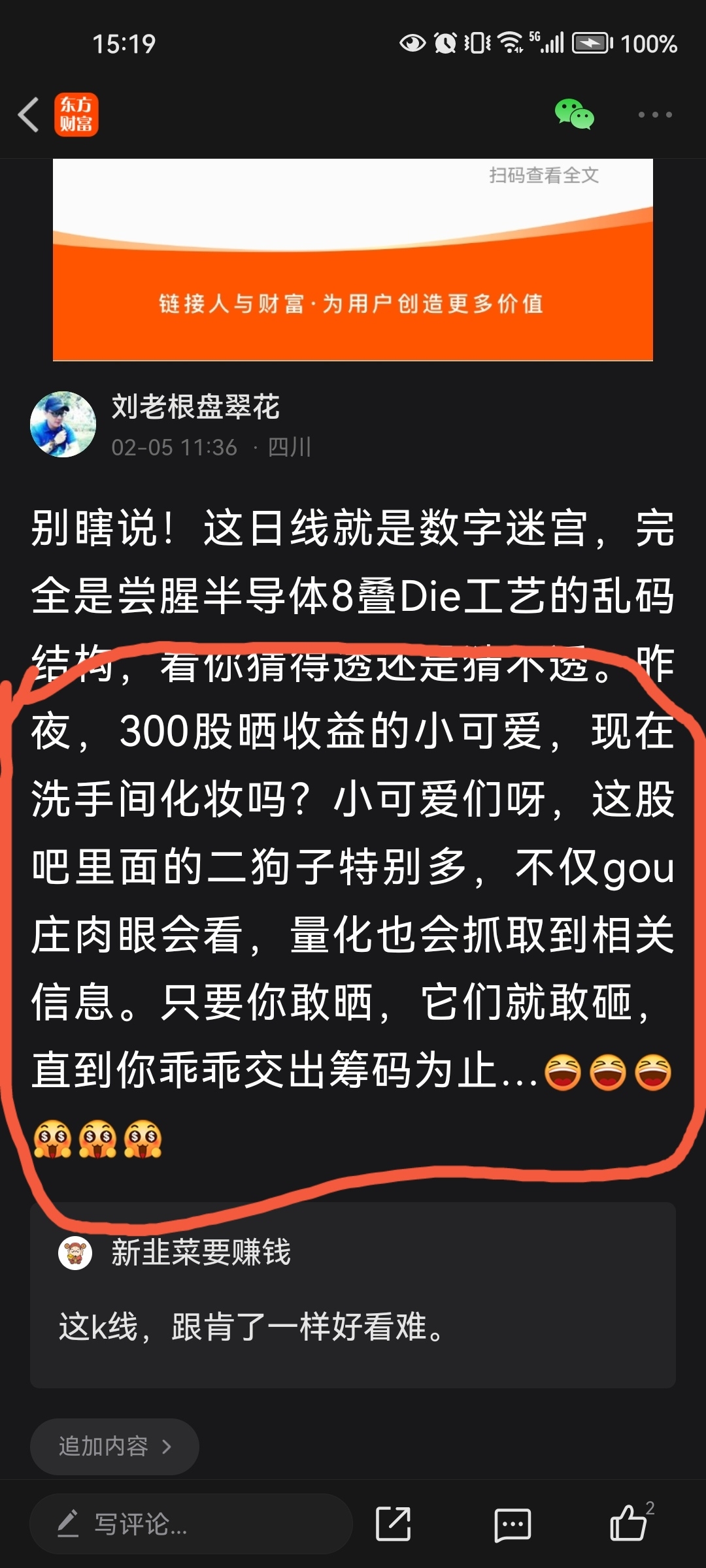 温馨提示: 1.根据《证券法》规定,禁止编造、传播虚假信息或者误导性信息,扰乱证券市场;2.用户在本社区发表的所有资料、言论等仅代表个人观点,与本网站立场无关,不对您构成任何投资建议。用户应基于自己的独立判断,自行决定证券投资并承担相应风险。《东方财富社区管理规定》