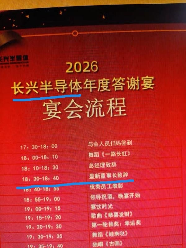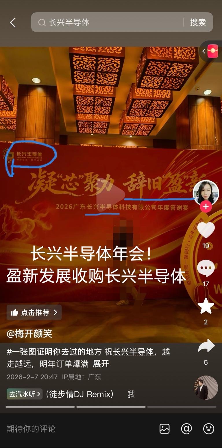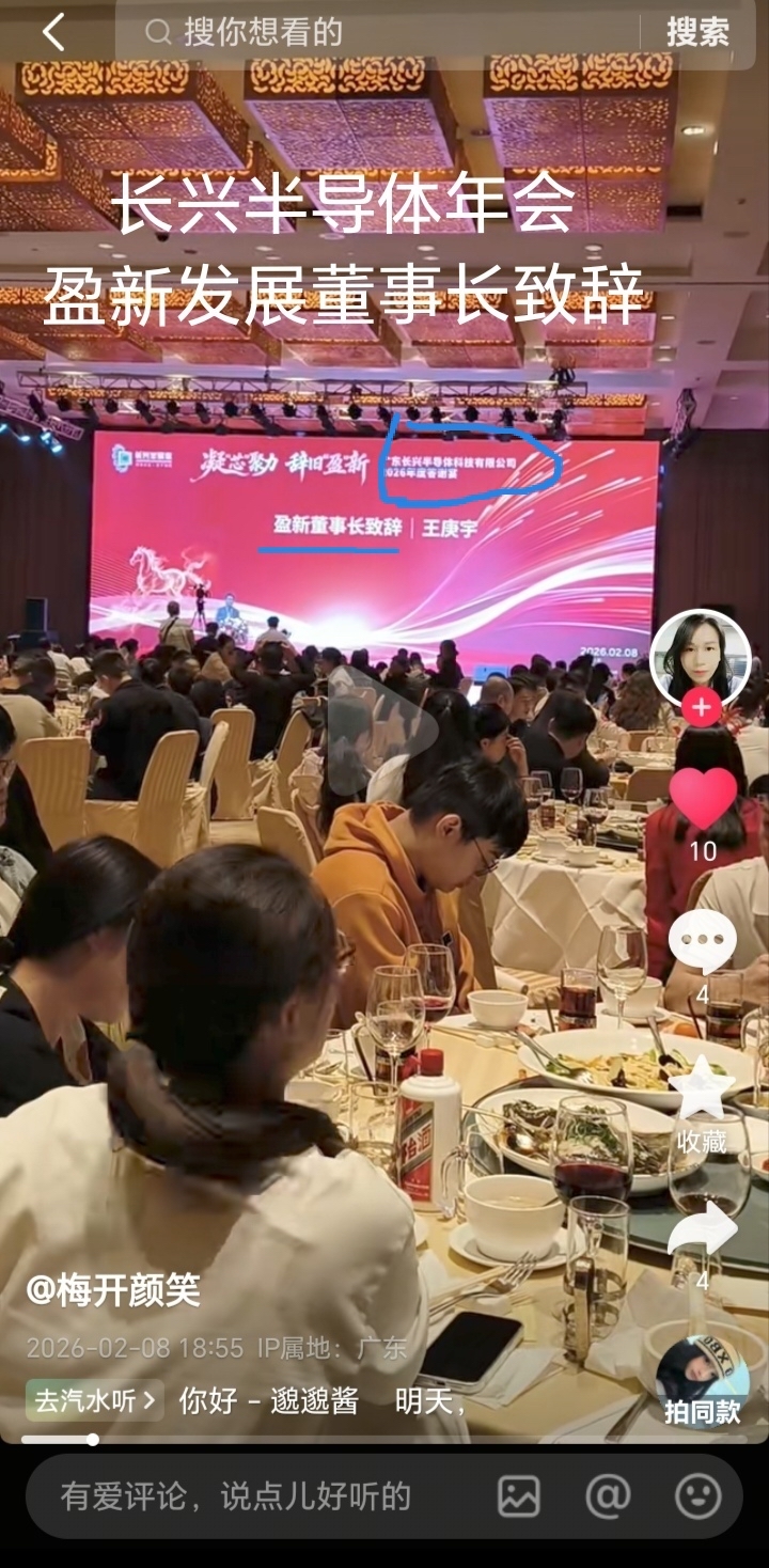 2月8日长兴半导体年会。盈新发展董事长致辞说“一家人”!收购铁板钉钉了!最便宜半