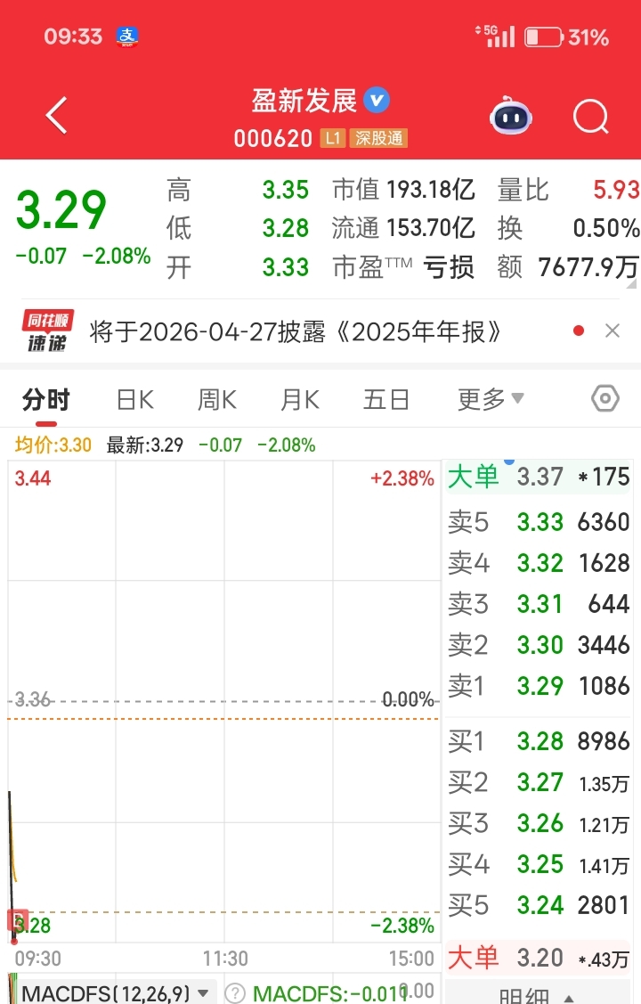 $盈新发展(SZ000620)$ 我突然想到我还有笔资金,3.28果断加仓,鄙人不才全仓买入杠杠拉满